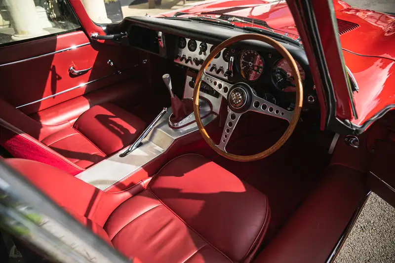 This 1962 Jaguar E-Type Series I 3.8-Litre Coupé, an early 'non flat-floor' model, has been lavishly maintained with a recent engine rebuild and numerous upgrades. Originally delivered to New York, it was later converted to right-hand drive and has undergone significant mechanical work, making it a well-cared-for classic ready for its next journey.