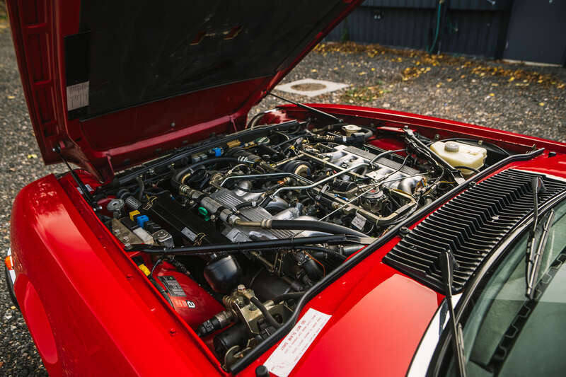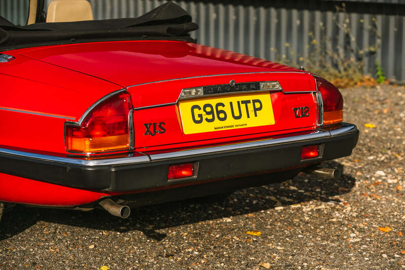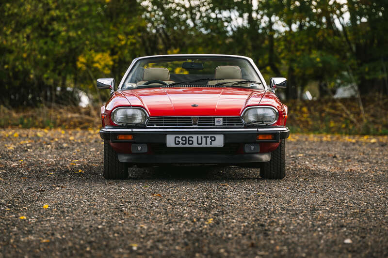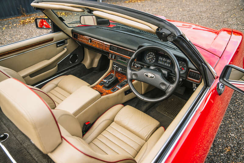 This 1989 Jaguar XJ-S Convertible is presented in exceptional condition, having covered only 9,800 miles from new. A two-owner car with comprehensive history, it boasts a striking Signal Red exterior over a Biscuit leather interior and is mechanically sound.