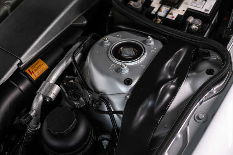 Finished in timeless Iridium Silver Metallic with black leather upholstery, grey carpets and a black soft top, this example benefits from desirable factory options including carbon fibre interior trim, Panoramic glass roof, COMAND navigation with phone integration, BOSE sound system, TV tuner, CD player, automatic climate-control and Parktronic parking sensors.