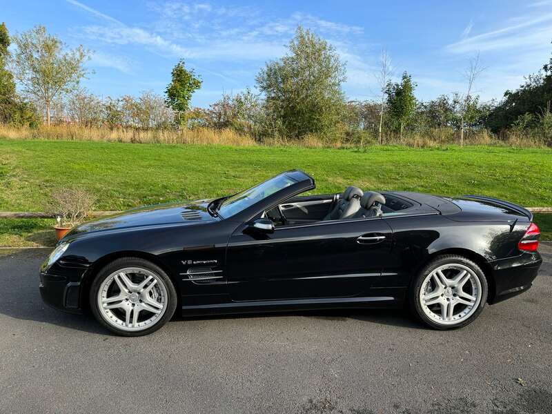 This R230 SL55 AMG is a UK-supplied, right-hand drive model with low mileage and a rare F1 Performance Package. It boasts a comprehensive service history and a high specification, making it a desirable modern classic.