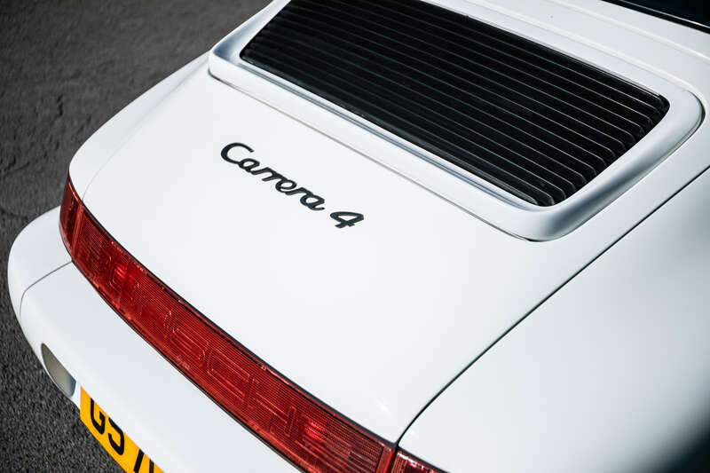 This is a collector-quality, low-mileage (22,656 miles) UK-supplied, right-hand drive Carrera 4 911 (964) from 1990. It features a manual gearbox, Grand Prix White exterior, and desirable factory options, with values rising due to its status as the final iteration of the original 911 body style.