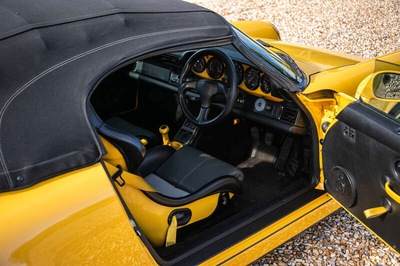 This is an incredibly rare, right-hand drive 1993 Porsche 911 (964) Speedster, one of only six C16 UK-market examples, finished in Speed Yellow. It has a documented service history and recent recommissioning, making it a highly desirable collector's item.