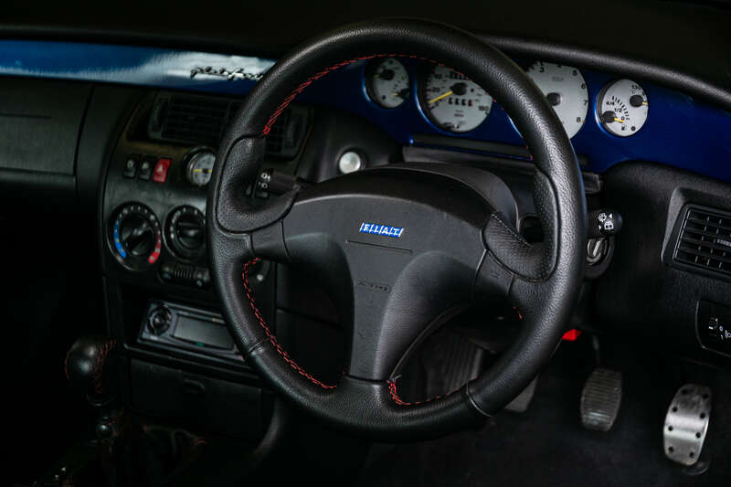 This is a low-mileage 2000 Fiat 20v Turbo Plus, finished in Electric Blue with a retrimmed black and red interior. It features a 6-speed gearbox, comprehensive history, and has been dry stored for the last seven years, potentially making it a worthwhile investment.