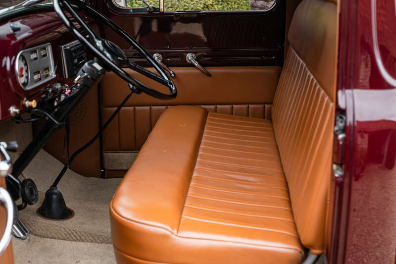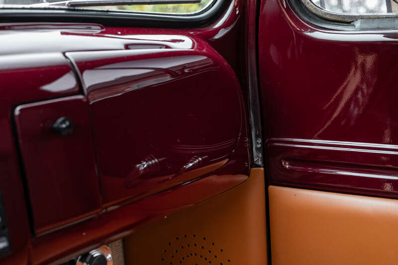 This classic car, imported to the UK in 2019, features a period-correct 3,900cc Flat Head V8 engine and a beautifully presented deep burgundy exterior with a tan interior.