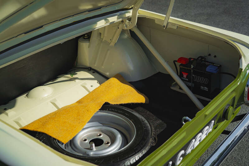 The listing states that everything on the car is either new/old stock or fully rebuilt. The car is a replica, assembled using a bodyshell from a period 1600 De Luxe with nearly all the correct early features and details. There is slight wear visible.