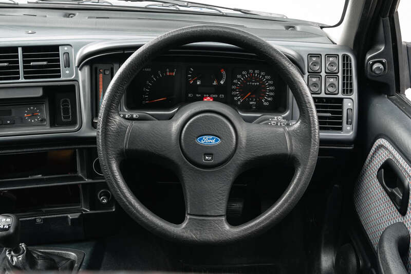 A Formula-Ferguson-derived four-wheel drive system distributed drive 34% front, 66% rear; suspension was upgraded over the XR4i to accommodate four-wheel drive and allow sportier handling, and the rear brake discs were enlarged; the XR4i ‘biplane’ rear wing was changed for a subtler spoiler