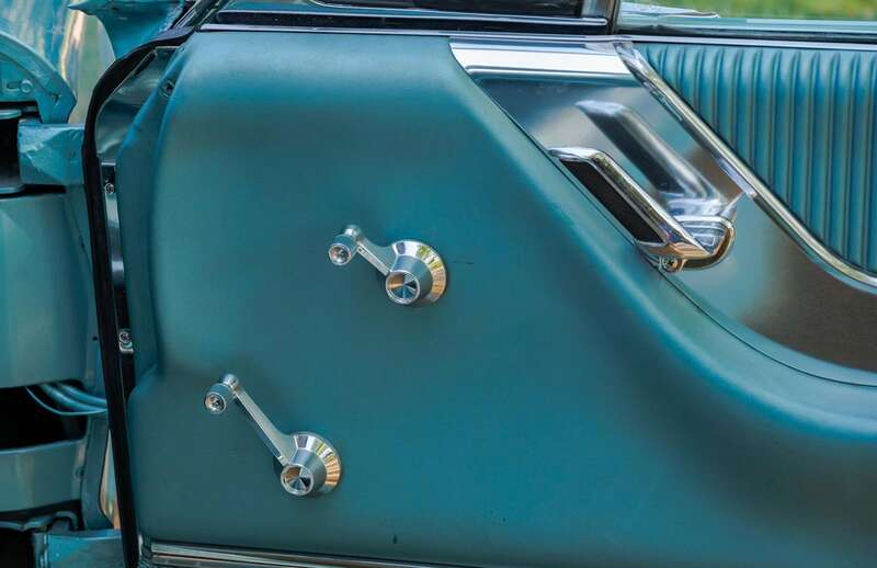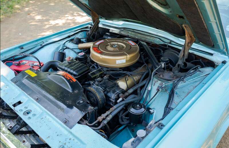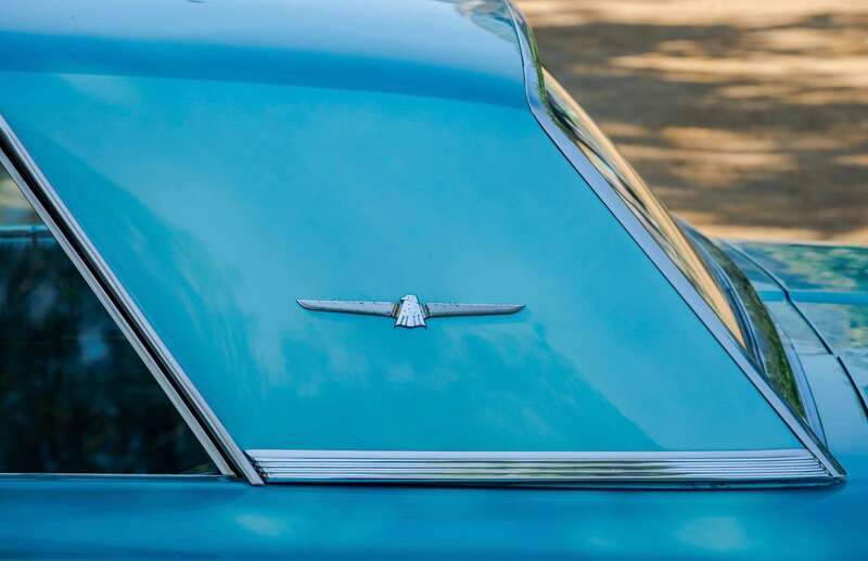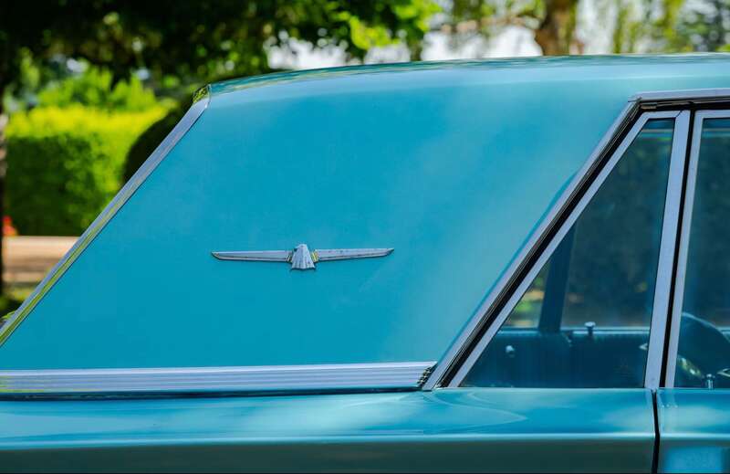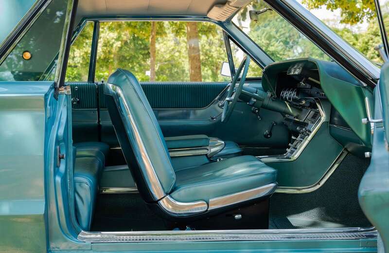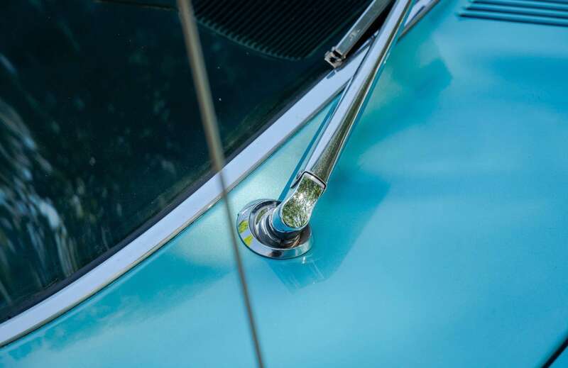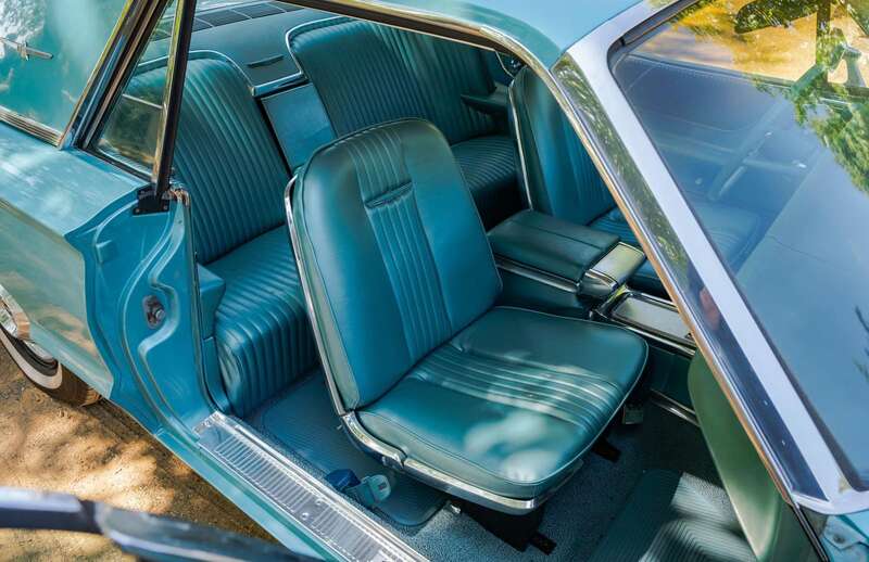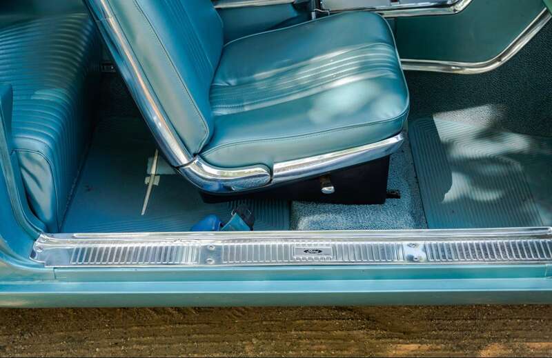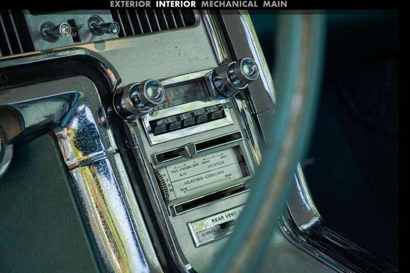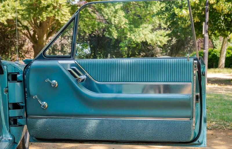 Finished in its original Patrician Green over a Light Turquoise vinyl-trimmed interior, complemented by teal-coloured carpets and chrome detailing.