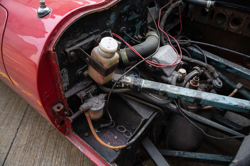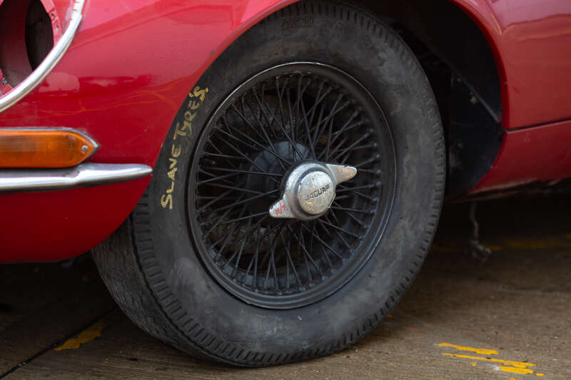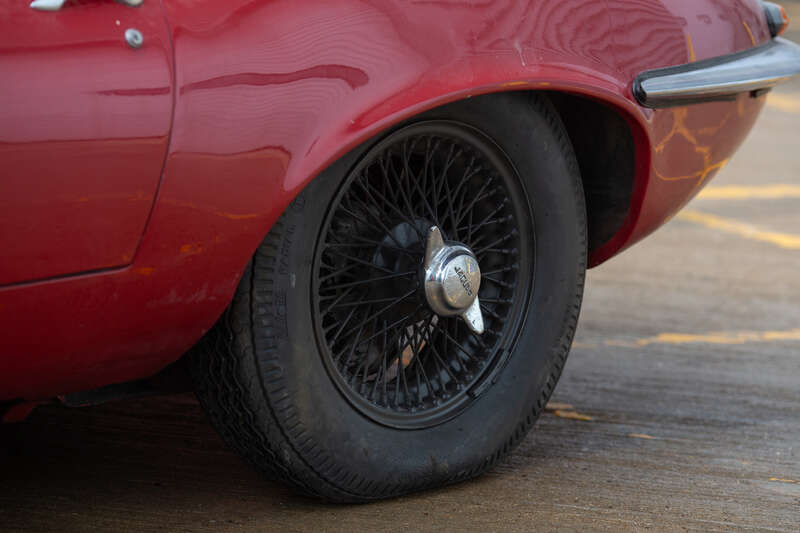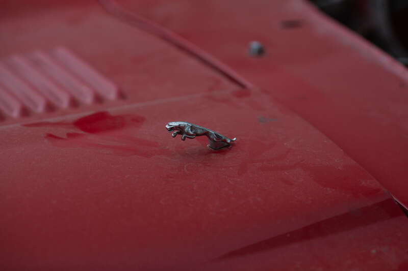 Originally finished in Opalescent Silver Blue, it was repainted red during its earlier restoration and fitted with flared wheel arches front and rear, giving the car a look reminiscent of the later Series 3 V12