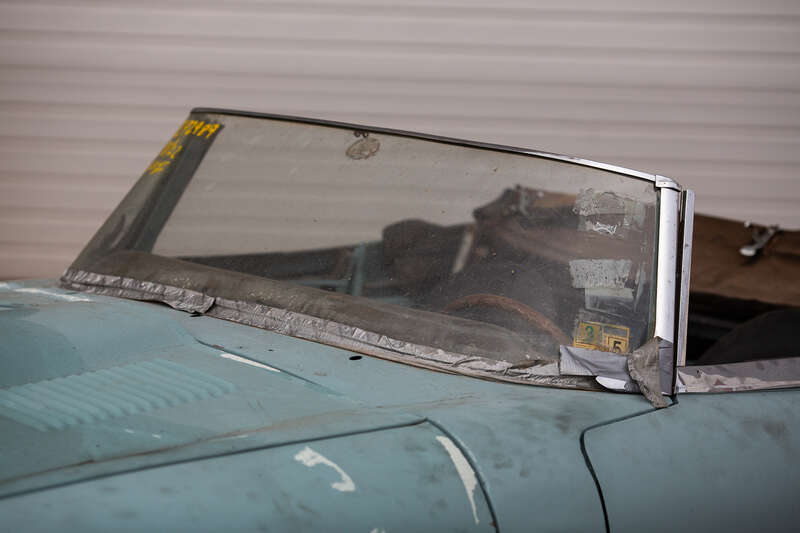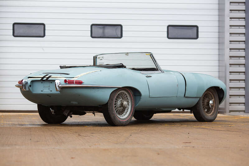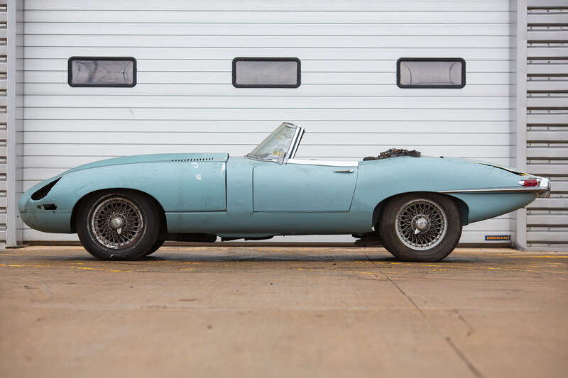 This 1961 Jaguar E-Type Roadster is a left-hand drive restoration project, retaining its original 3.8-litre engine and four-speed manual gearbox.