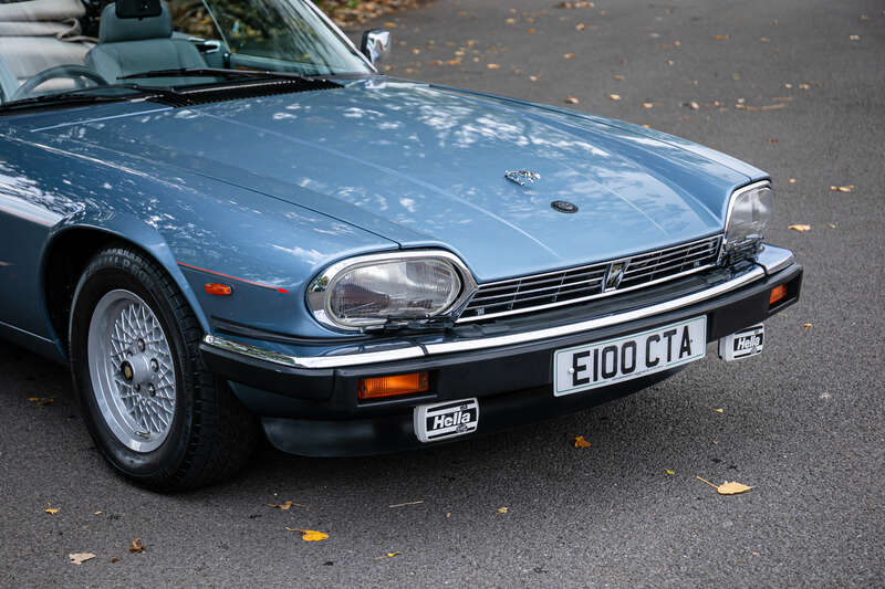 Finished in Arctic Blue with a matching blue hood and Saville Grey leather interior, the combination exuding understated sophistication typical of late 1980s Jaguars