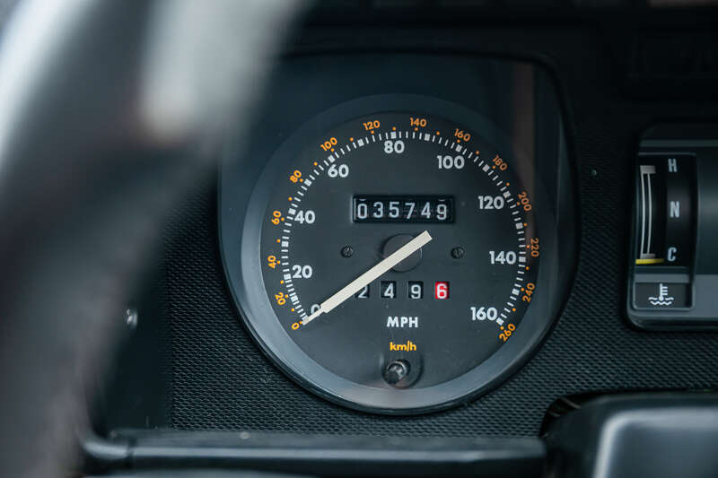 The odometer now shows just 35,745 miles, supported by the original stamped service book and accompanying history file