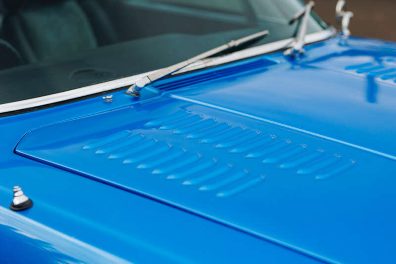 Finished in Brienz Blue, complemented by delicate silver and red coachlines over black leather with distinctive sheepskin seat inserts, offering a unique blend of luxury and period charm