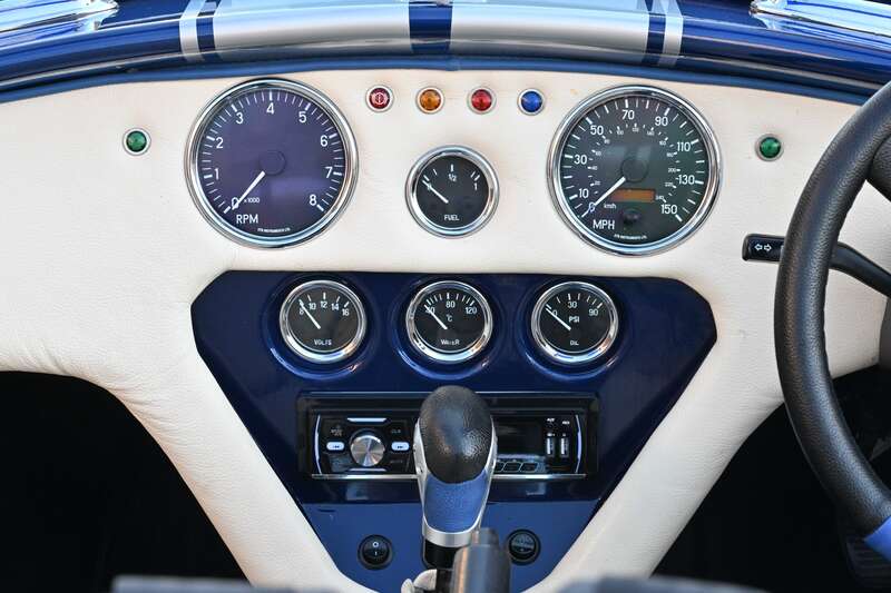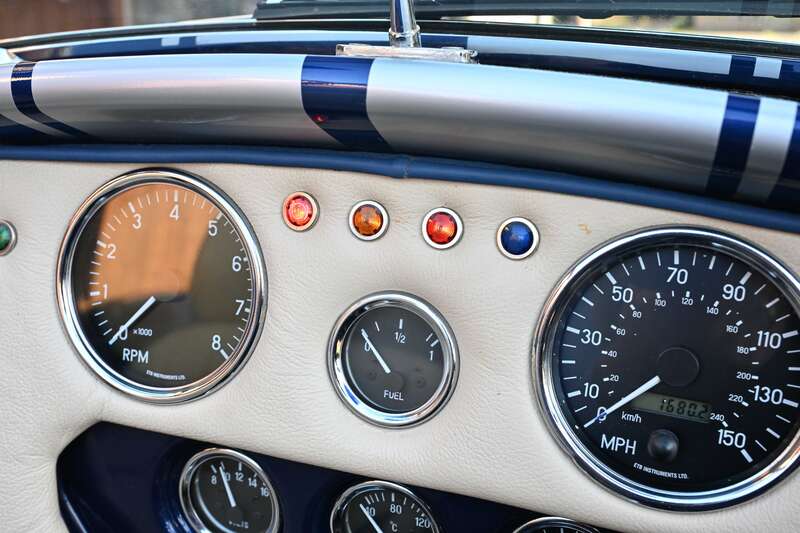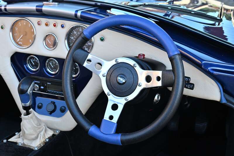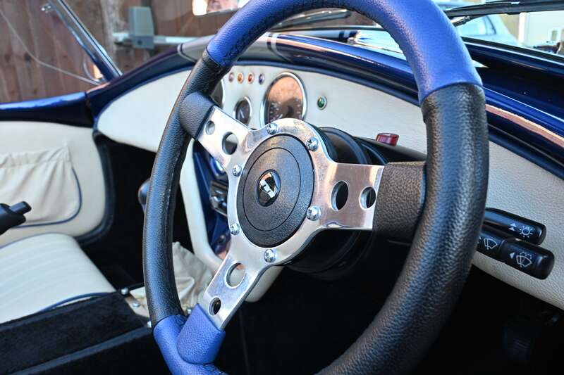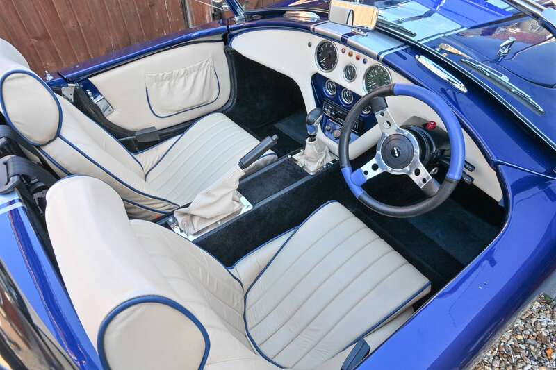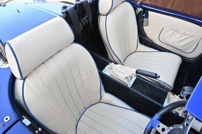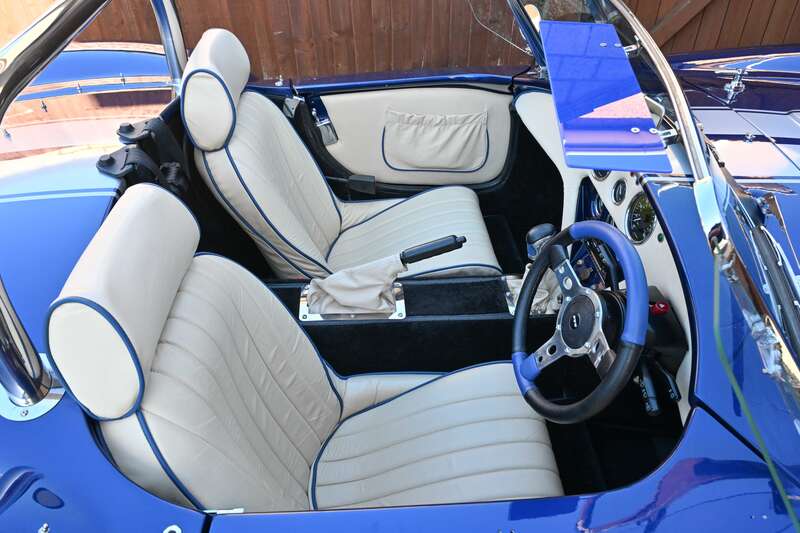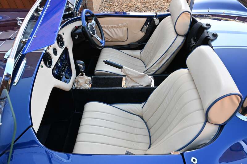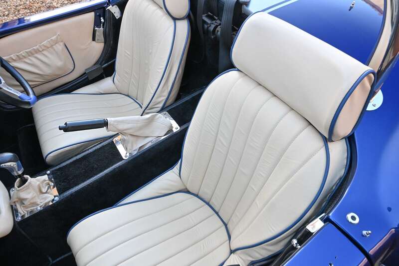 This 2021 Pilgrim Sumo 3 'Cobra' replica, finished in Imperial Blue with Magnolia Hide interior, boasts a 210bhp Cosworth V6 engine and a 5-speed manual transmission. With only 1,680 miles since its completion and a recent IVA inspection, this well-engineered replica is ready to be enjoyed.