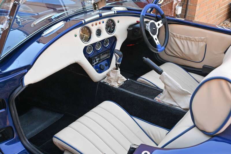 Purchased as an unfinished project in 2017 by the present custodian who saw the potential in this superb 'Cobra' replica Built over the following four years utilising components from a 1990’s Ford Granada 24v Cosworth donor vehicle all attached to a new Pilgrim fully galvanised chassis With motivation supplied by a V6 Cosworth engine delivering 210bhp through a Ford Type 9 5-speed gearbox, the 'Cobra' has more than enough power to be enjoyable and then some Presented for and passing an IVA inspection in October 2021, the Pilgrim was duly registered on a period-correct 1965 registration number, HVK 705C It presents beautifully in Imperial Blue highlighted by twin silver stripes over a full Magnolia Hide interior with digital instruments providing the all important mechanical readings Rolling on 15" Minilite alloy wheels, the car is accompanied by a new black vinyl hood that has not yet been fitted together with a pair of new matching side screens The history file includes some build im...