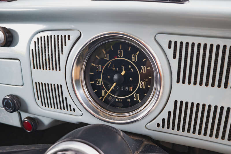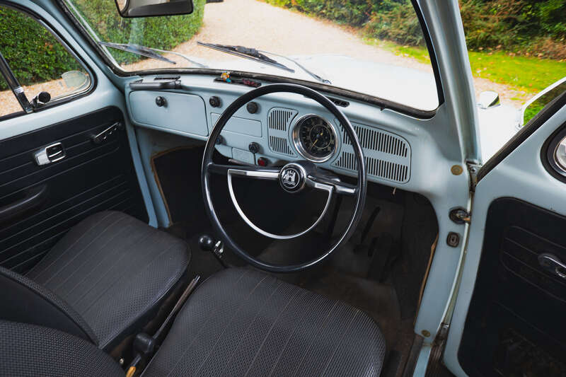Dating from 1969, this Beetle 1300 is finished in Diamond Blue which displays a gentle patina consistent with its age, one or two panels presenting with slightly flatter paintwork