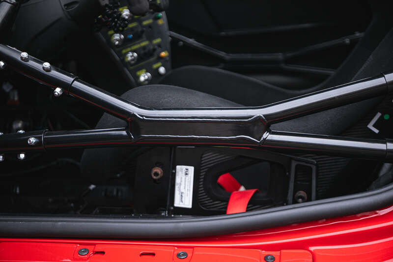 This 2023 Ferrari 488 Challenge Evo, finished in Rosso Scuderia, has low mileage (3,233 miles) and was imported to the UK, meaning no VAT is due. It is eligible for top-class motorsport events.
