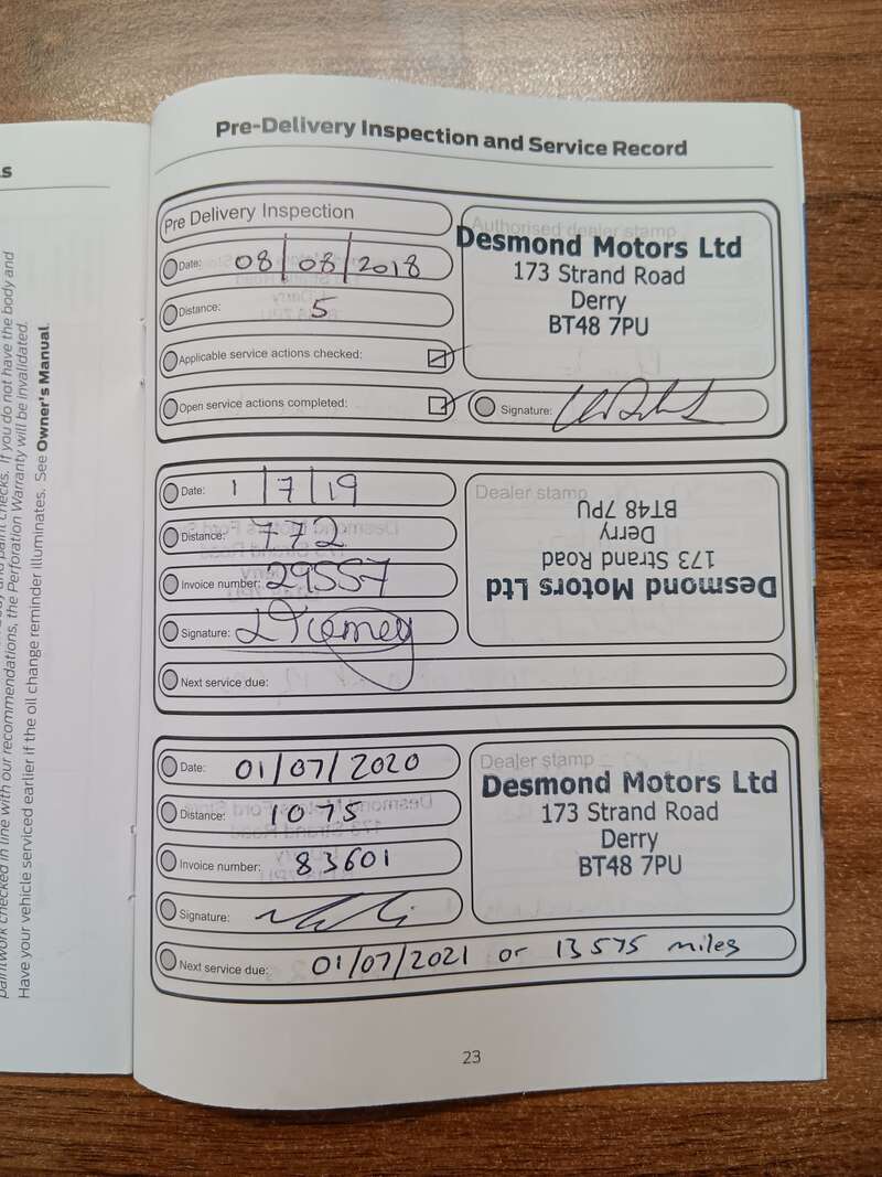 Supplied new on 31st July 2018 by Desmond Motors of Derry City, Northern Ireland’s largest family-run Ford dealership, the car has, despite its minimal mileage, returned to the supplying dealer for annual servicing from 2019 through to 2025.