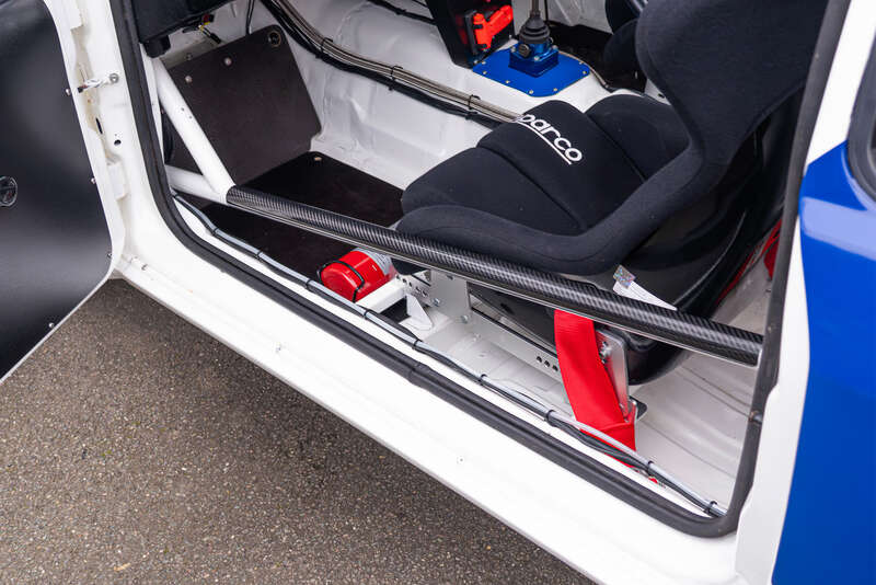 This is a modern recreation of a Ford Sierra Group A rally car, built to contemporary motorsport standards. It features a rebuilt Cosworth YB engine, Quaife sequential gearbox, competition-spec drivetrain and electronics, and a comprehensive safety setup.