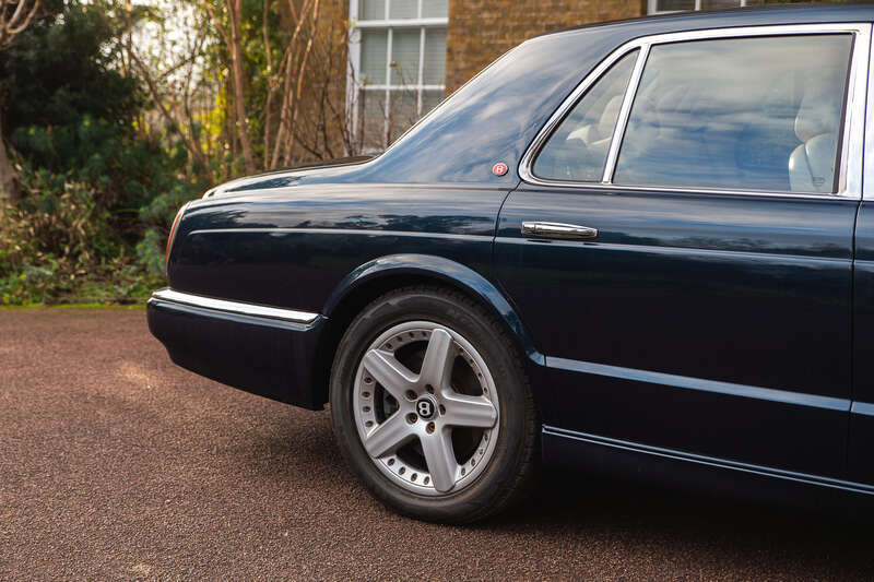 This 2001 Bentley Arnage Red Label is presented in Amethyst Blue with a Cream leather interior. It features a 6.75-liter turbocharged V8 engine and has had significant recent work, including a respray and new gearbox, with a comprehensive service history.