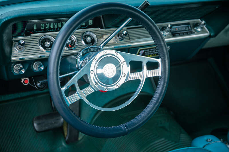 5.7-litre (350ci) V8, rebuilt 2013, now unleaded compatible, producing 335bhp mated to a 2-speed automatic Powerglide