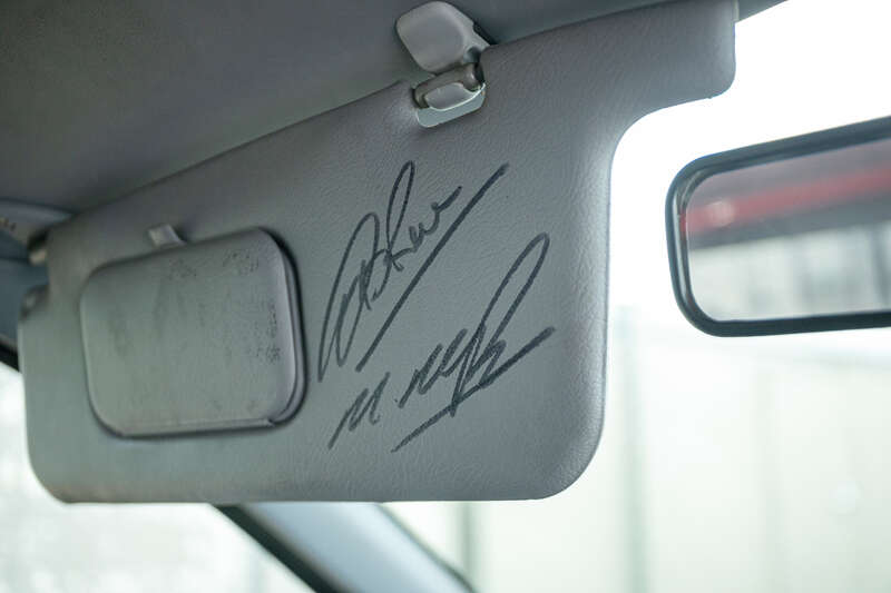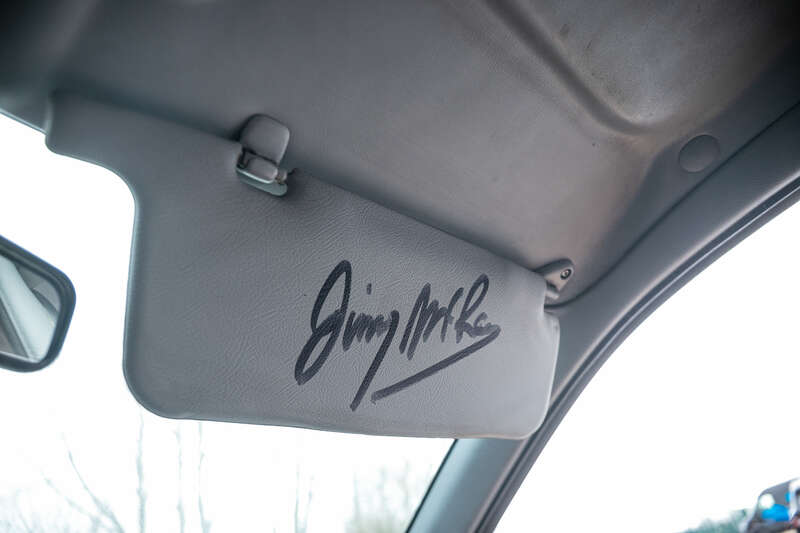 The driver and passenger sun visors are respectively signed by Jimmy McRae, five-time British Rally Champion, and Alister McRae, 1995 British Rally Champion, together with Max McRae, representing three generations of rally pedigree