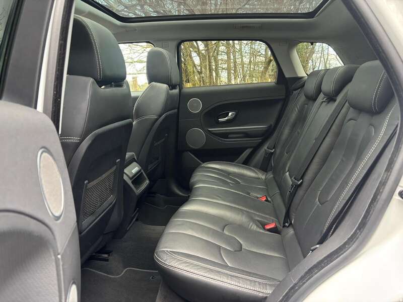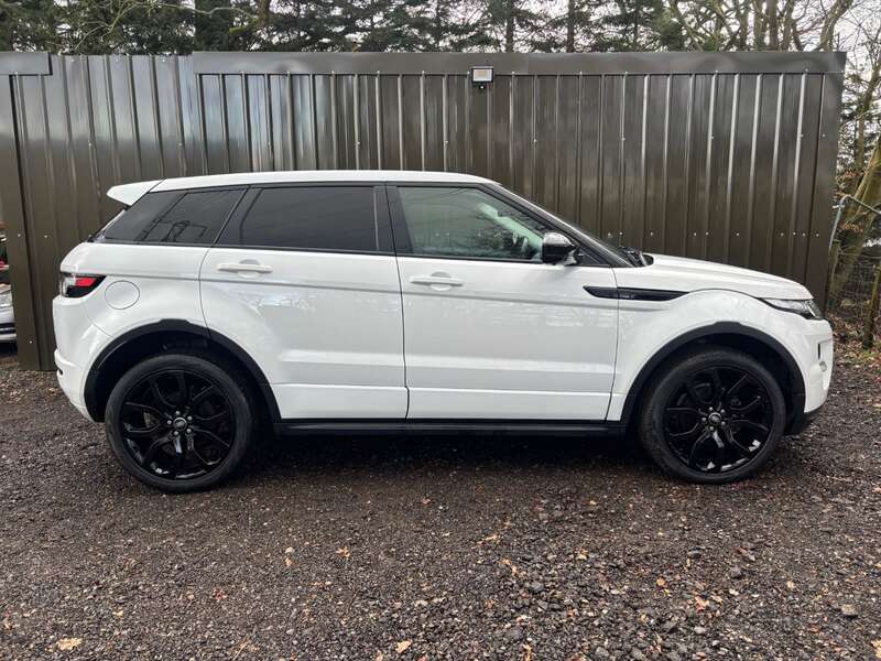 This 2015 Range Rover Evoque, originally from Japan, is finished in Fuji White with a Black Pack and black leather interior. With 78,900 miles and a recent UK service, it features a panoramic sunroof, Meridian sound system, and is ULEZ compliant.