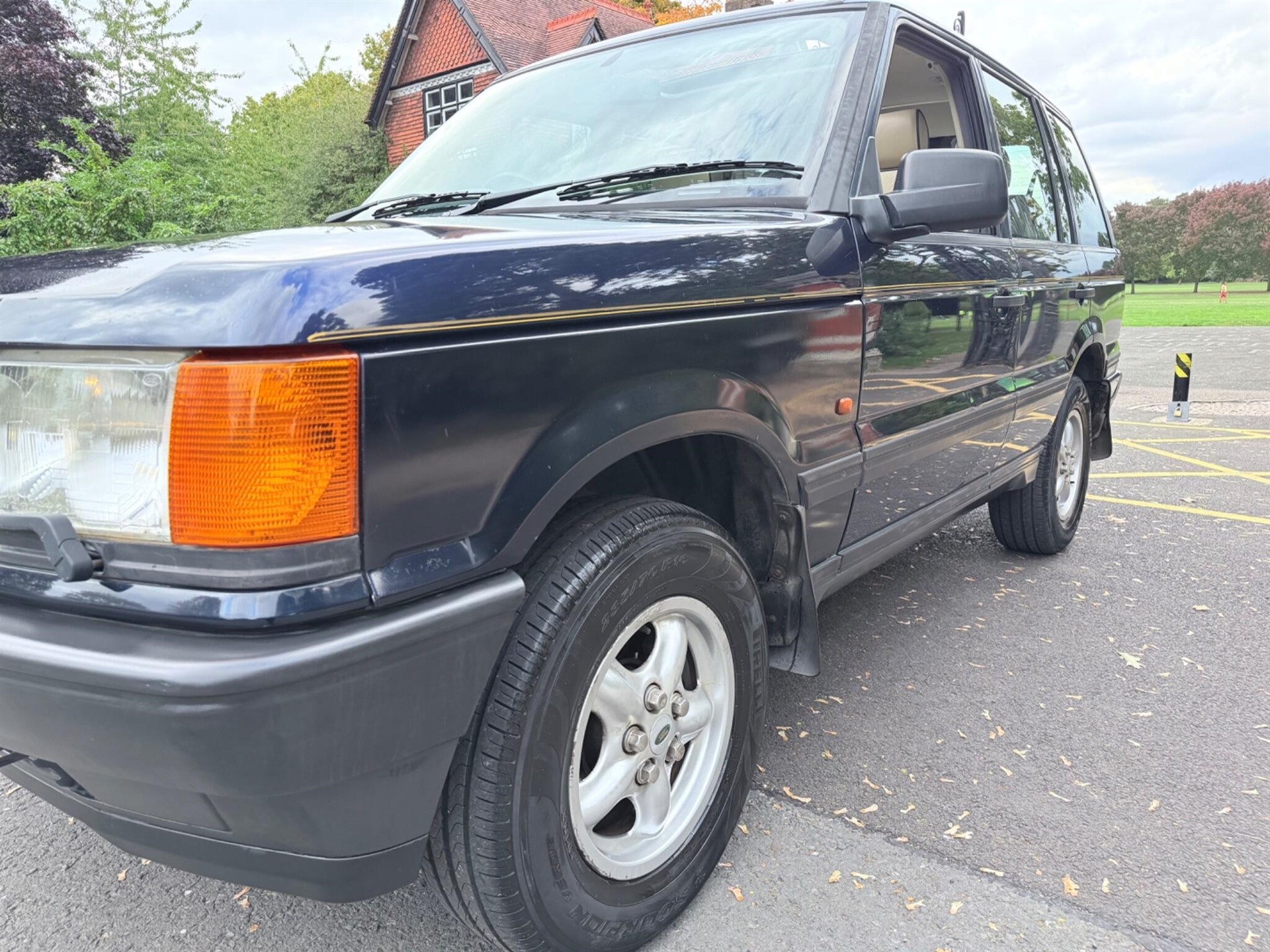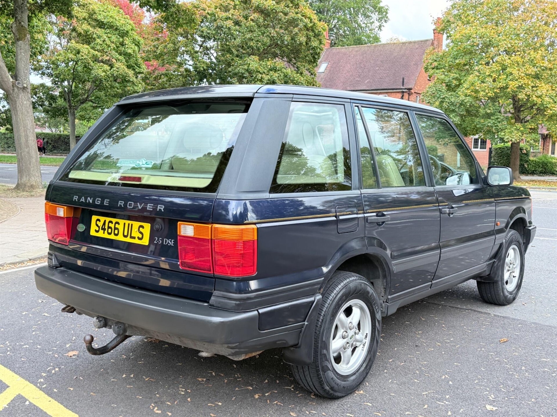 This 1998 Land Rover Range Rover DSE has 107,000 miles and a 2.5-litre diesel engine. Features include a cream leather interior, adjustable air suspension, electric sunroof, and heated seats, but the bonnet is faded.
