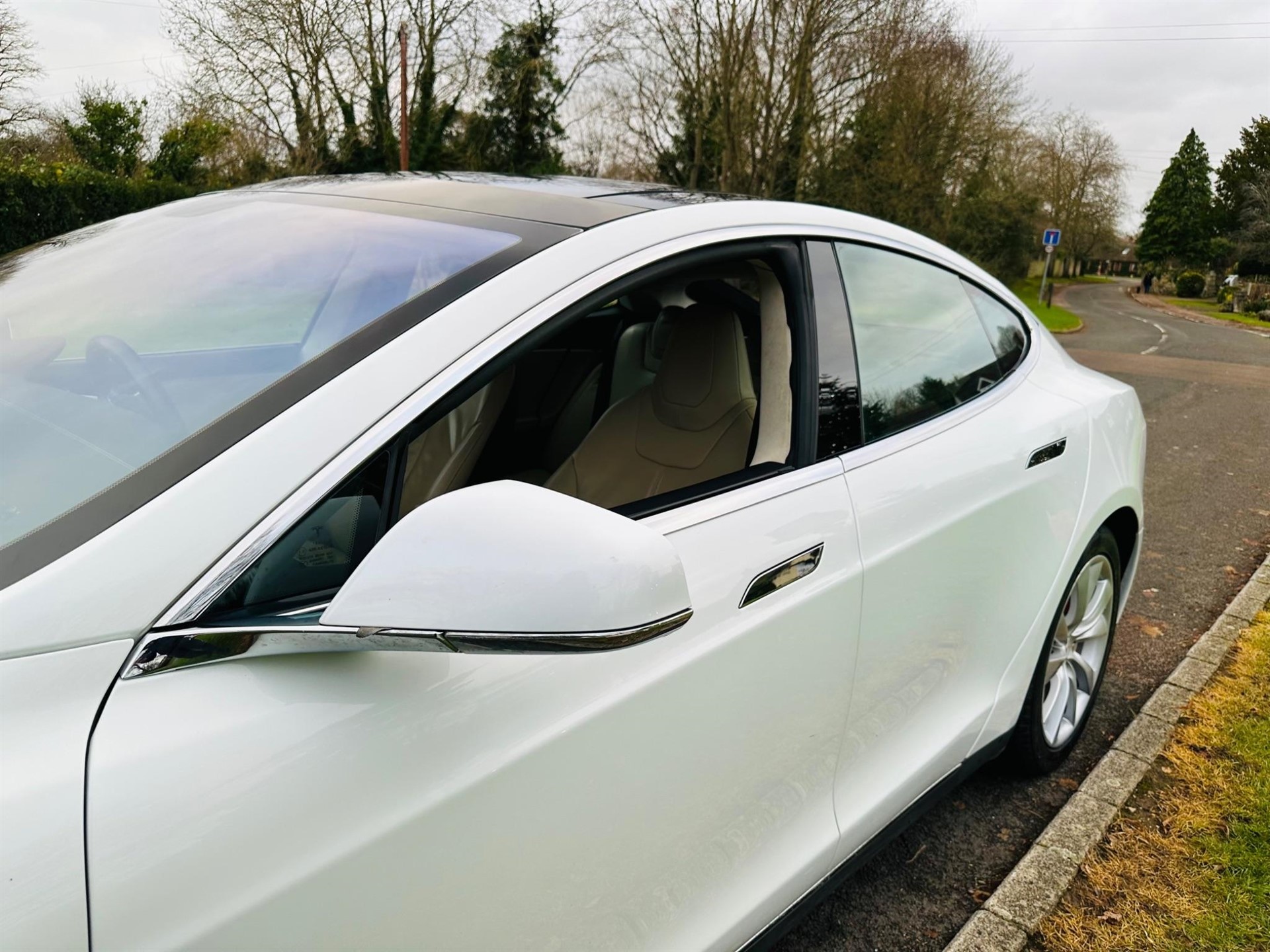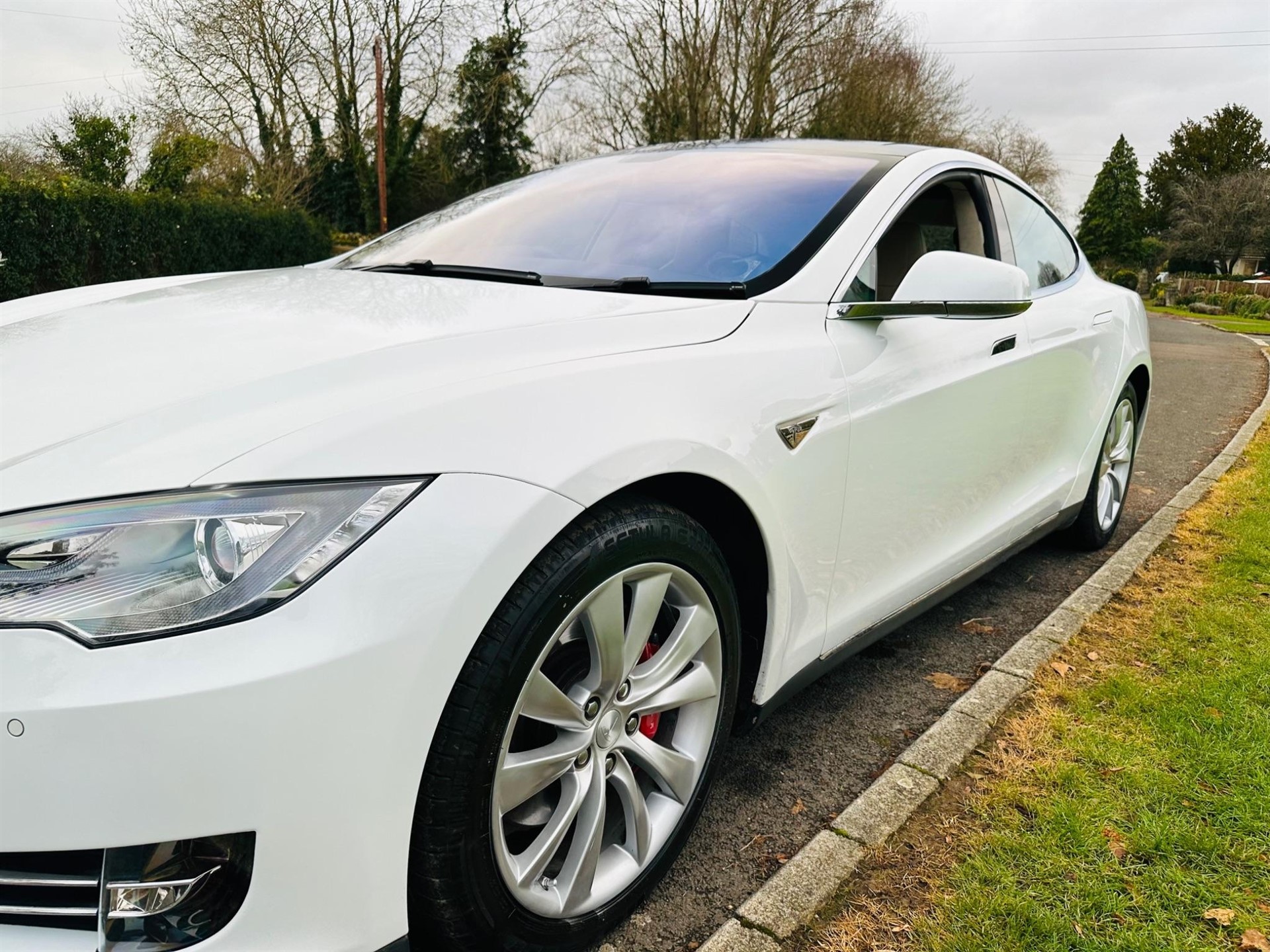 +++FREE SUPERCHARGE FOR LIFE+++ DRIVEN ONLY A GENUINE 85,000 MILES FROM NEW, ONLY 1 OWNER FROM NEW+++ HYBRID HIGH VOLTAGE BATTERY WAS REPLACED ON APRIL 2020 AT 63,000 MILES (WAS CARRIED OUT UNDER TESLA MANUFACTURE WARRANTY)+++CCS UPGRADE WITH CCS ADAPTER+++ FULL TESLA DEALER MAINTENANCE SERVICE HISTORY ALL UP TO DATE, PRESENTED IN HIGHLY DESIRABLE PEARLESCENT WHITE WITH TINTED GLASS PANORAMIC TILT AND SLID SUNROOF, 19 Inch TESLA TURBINE ALLOYS WITH RED CALIPERS, CREAM VEGAN LEATHER INTERIOR, DARK GREY MAHOGANY TRIM, ALUMINIUM TRIM INSERTS, ZUB-ZERO WEATHER PACK, TESLA APP CONNECTIVITY, VEHICLE IS IN EXCELLENT CONDITION THROUGHOUT, DRIVES EXCELLENT WITH NO ISSUS +++THE VEHICLE DOES HAVE A SOFTWARE GLINCH AND SHOWS THE FOLLOWING ERROR DRIVER USER SETTING COULD NOT BE RESTORED, CENTRE DISPLAY UNAVAILABLE WORKS FINE WITH NO ISSUES+++