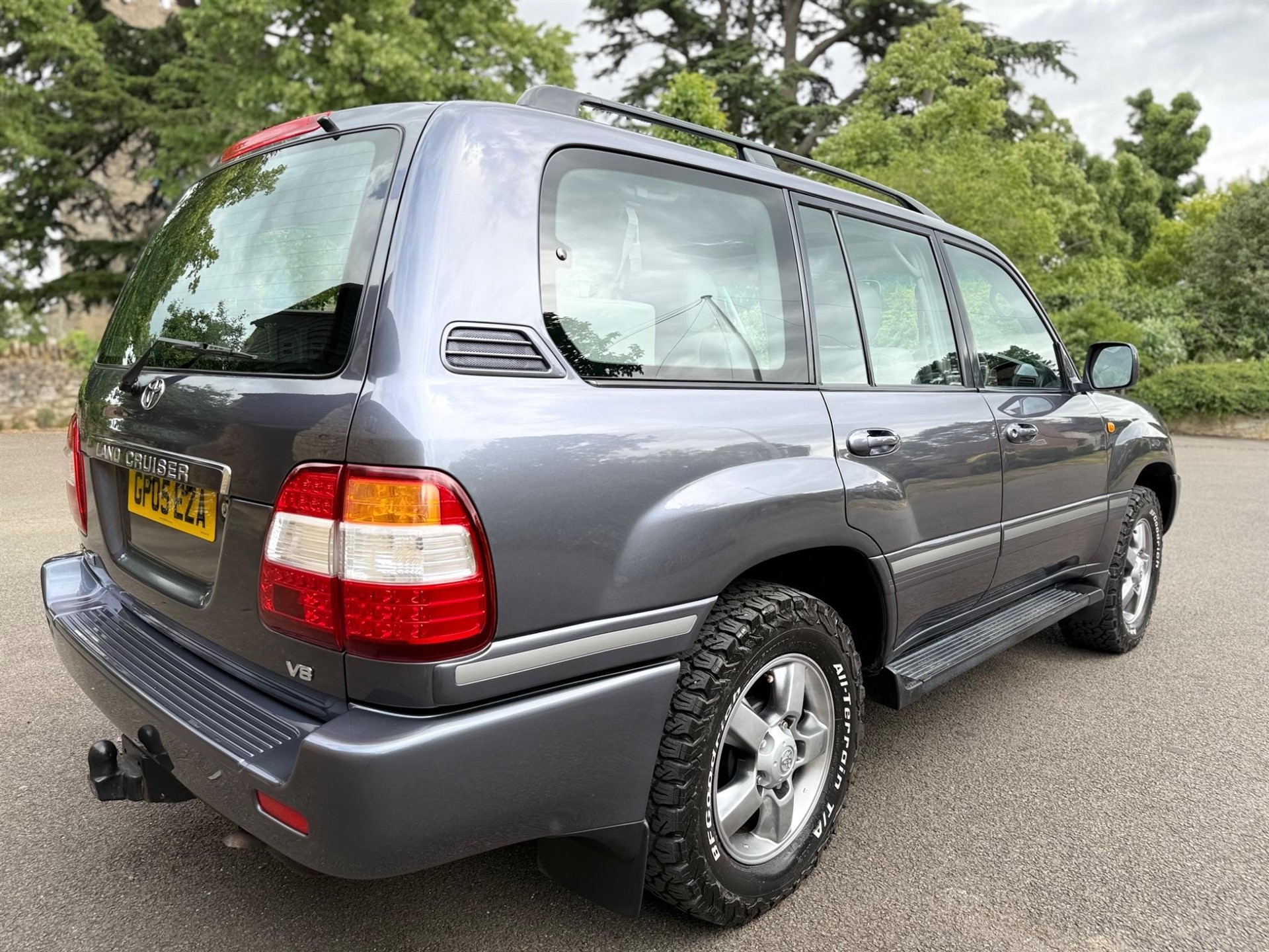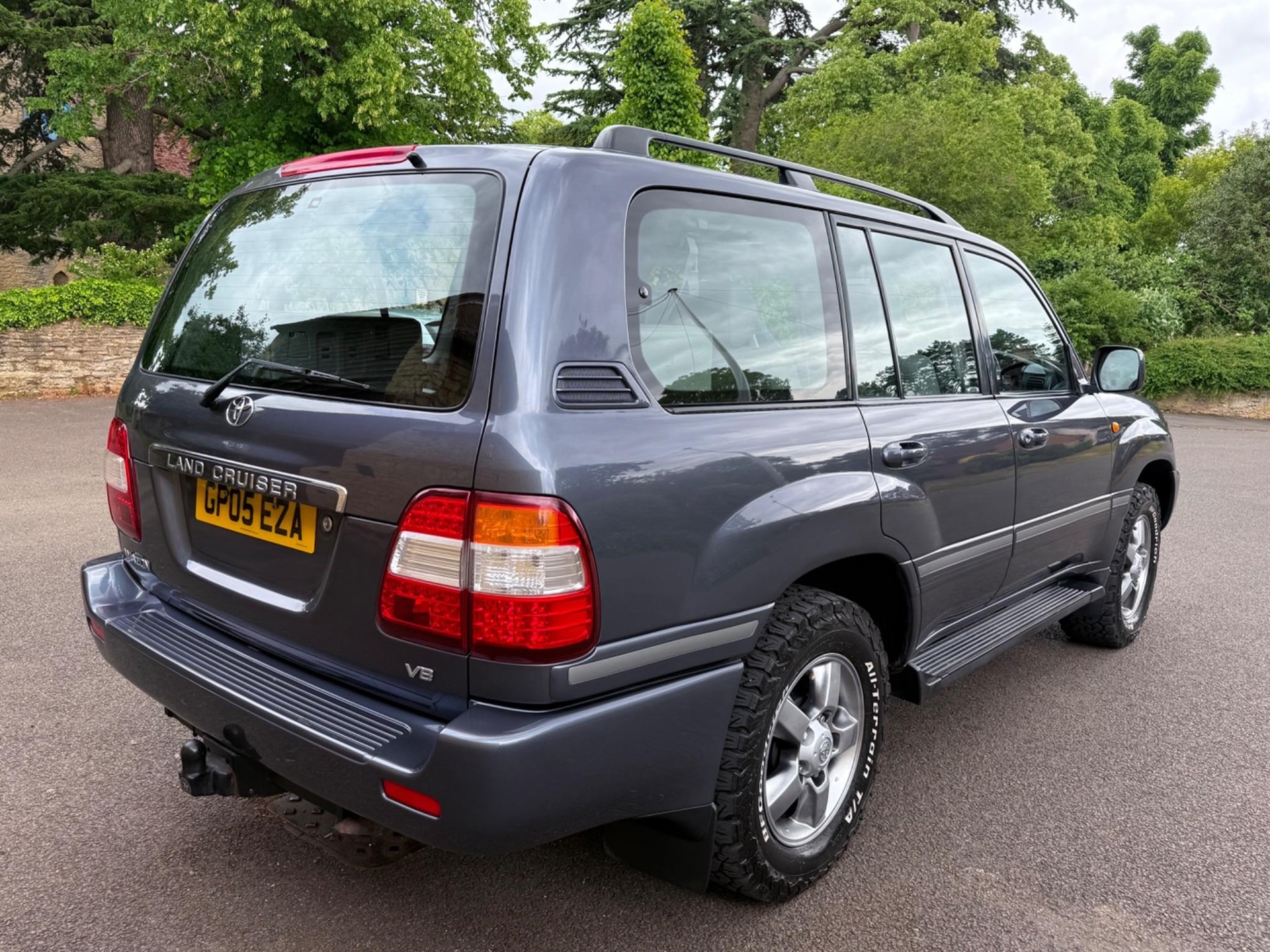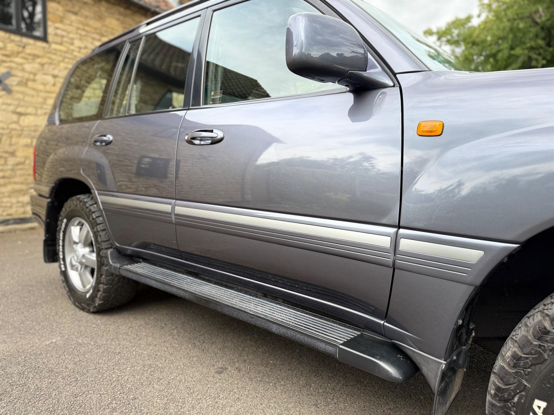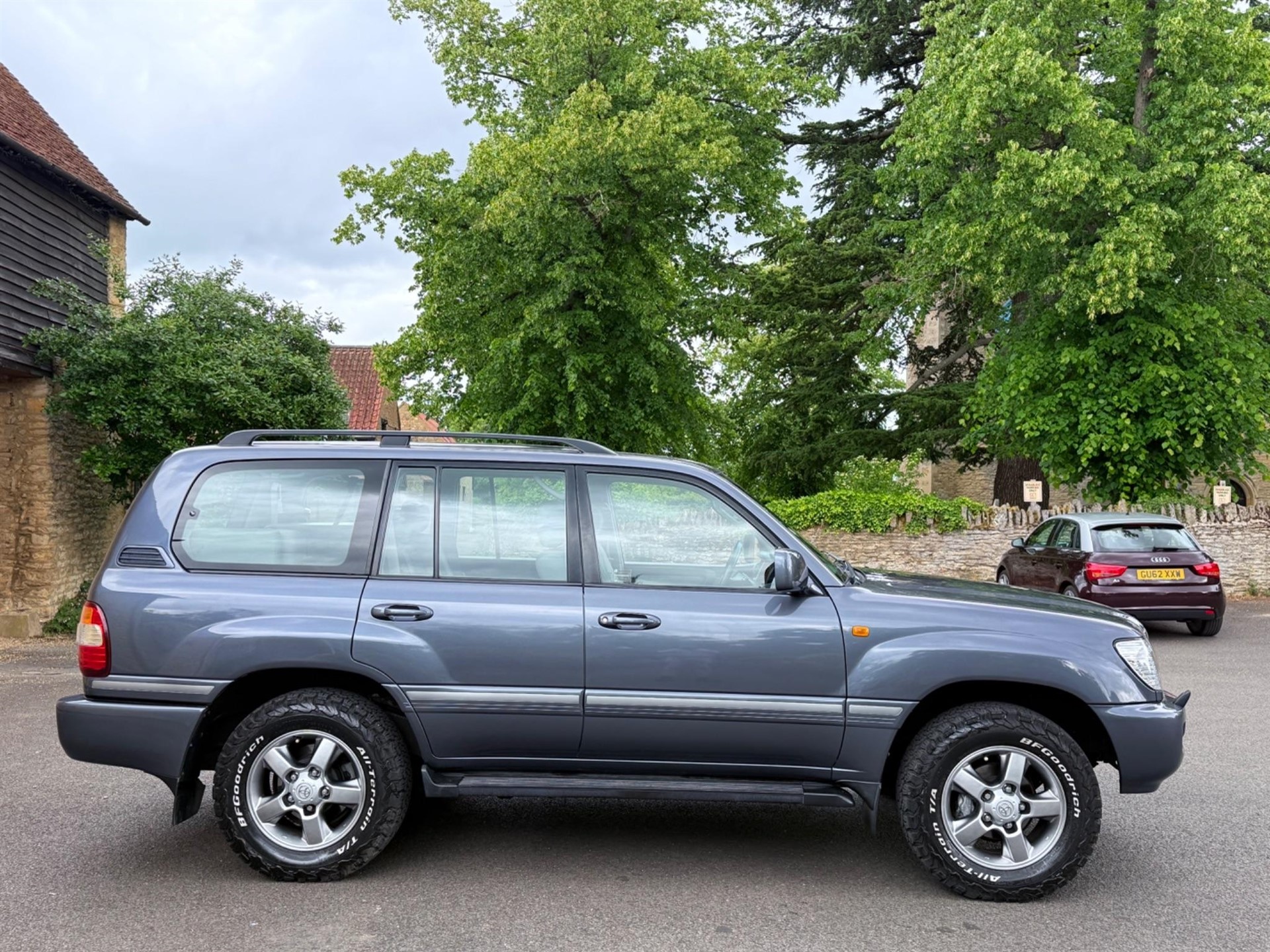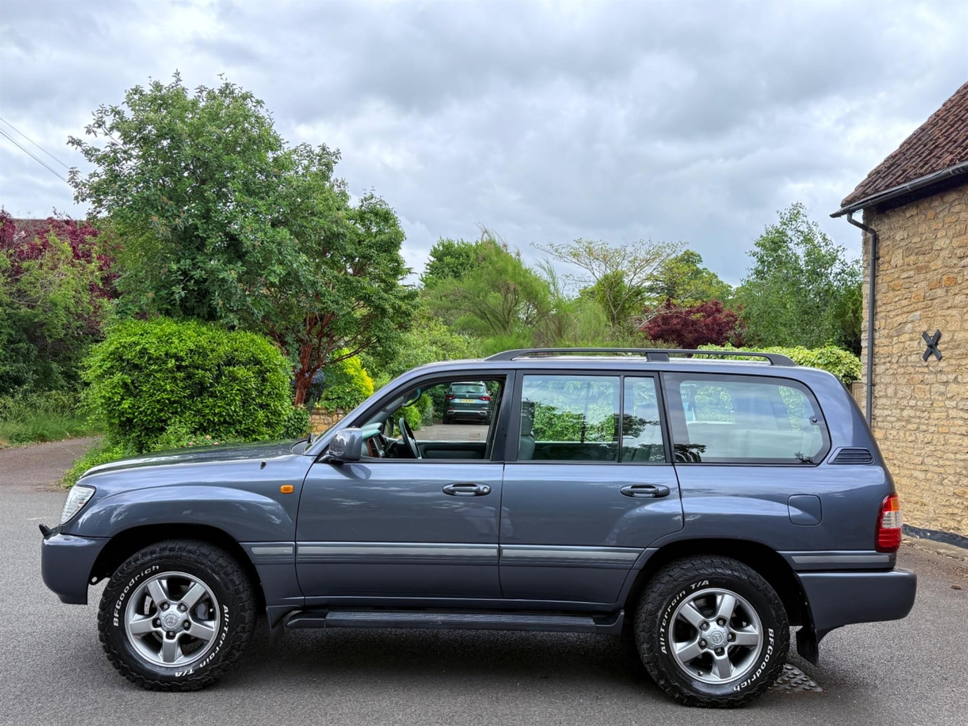 WELCOME TO INDIVIDUAL CARS, ONCE AGAIN WE PRESENT ANOTHER RARE IMMACULATE TOYOTA LAND CRUISER AMAZON 4.7 PETROL, THIS TOYOTA LAND CRUISER IS IN EXCEPTIONAL CONDITION THROUGHOUT FOR ITS MILEAGE AND AGE, ONLY DRIVEN A GENUINE 103,000 MILES FROM NEW, FULL SERVICE HISTORY (10 TOYOTA SERVICE STAMPS, RECENT SERVICE CARRIED OUT BY TOYOTA STEVEN EAGLE AT 103,000 MILES ON 05/12/2024, DETAILED SERVICE BILLS THROUGHOUT, EXCELLENT UNDER CHASSIS AND SUB FRAME (PLEASE REFER TO PICTURES), BODYWORK IN EXCELLENT CONDITION, VIEWING VERY HIGHLY RECOMMENDED, THIS LAND CRUISER AMAZON IN EXCELLENT CONDITION WITH SUCH AN COMPREHENSIVE SERVICE HISTORY ARE VERY SOUGHT AFTER AND A ONE OFF FIND, FULL GREY LEATHER INTERIOR, EXTENDED LEATHER DOOR CARDS, LEATHER STITCHED STEERING, 7 SEATS, ELECTRIC HEATED SEATS, MAHOGANY WOOD TRIM, ALUMINUM TRIM, ELECTRIC STEERING COLUMN, ELECTRIC HEIGHT ADJUSTMENT, COMFORT SUSPENSION SETTING, ROOF RAILS, ELECTRIC GLASS SUNROOF, SIDE STEPS, FRONT CHROME BILL-BARS, TOW BAR, Power st...