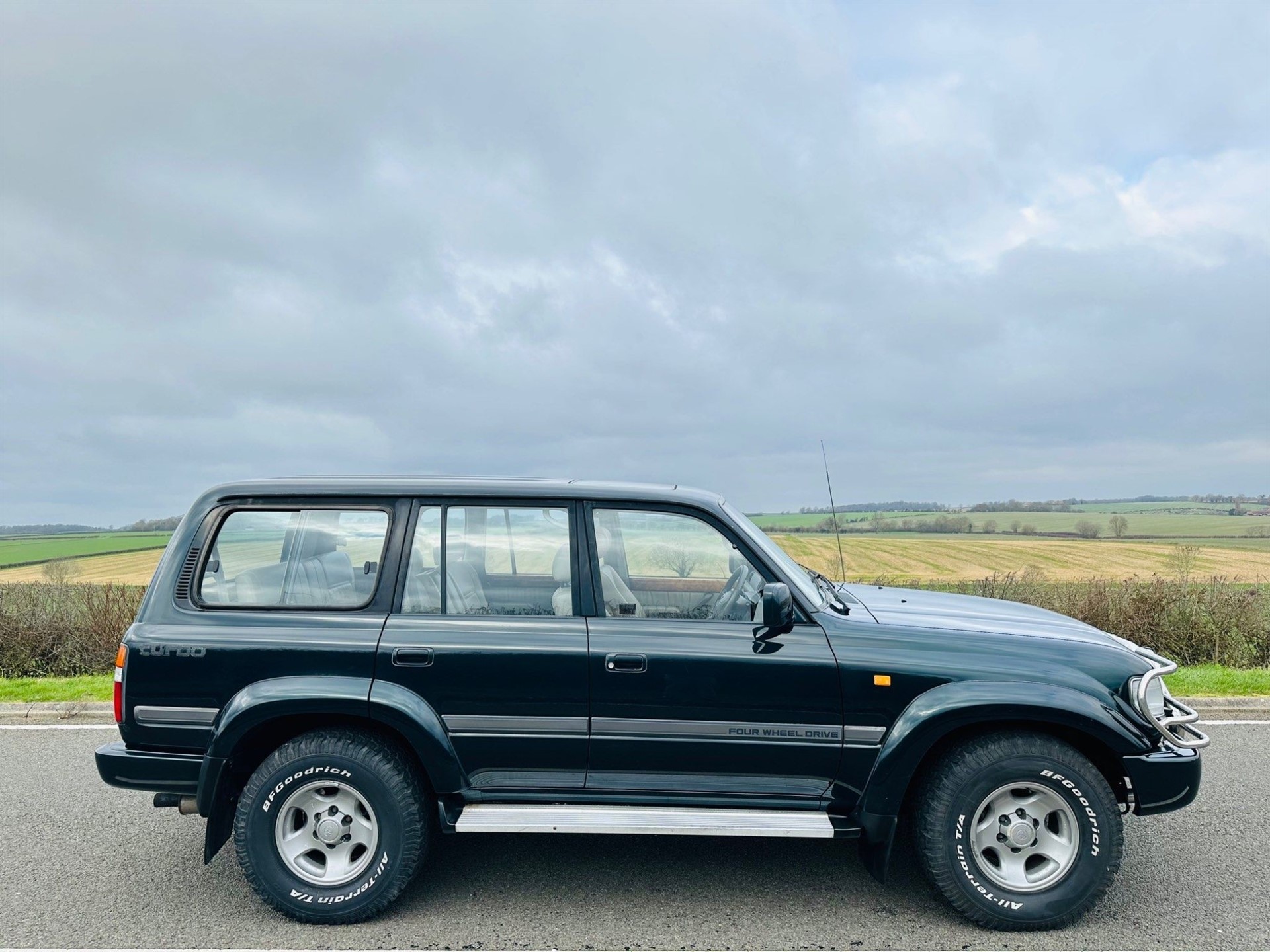 EXTREMELY RARE AND IN EXCELLENT CONDITION 80 SERIES LAND CRUISER, BODYWORK FULLY RESTORED, UNDER CHASSIS IN EXCELLENT CONDITION, 24 VALVE ENGINE, MANUAL GEARS, ONLY 3 PREVIOUS KEEPERS, WITH FULL SERVICE HISTORY (FULL SERVICE JUST CARRIED OUT WITH CAMBELT AND WATER PUMP CHANGED BY TOYOTA SPECIALIST, ORIGINAL SERVICE BOOK, BILLS, MOST PREVIOUS MOTS, 3 SETS OF KEYS WITH ORIGINAL GREY KEY AND ORIGINAL TOYOTA REMOTE KEY FOBS, ALL HANDBOOKS WITH OWNERS MANUAL), METALLIC FOREST GREEN, BEIGE LEATHER INTERIOR, ELECTRIC HEATED SEATS, 7/8 SEATS, MATCHING BEIGE CARPETS, MAHOGANY WOOD TRIM, E/HEATED GLASS SCREEN, SWITCHABLE DIFF-LOCK, MANUAL 4X4 GEAR SELECT, E/AREAL, SIDE STEPS, TOW BAR, Power steering, E/windows x4, E/mirrors, Remote central Locking, Centre arm rest, rear restraints, CLIMATE CONTROL/AIR CON, CD PLAYER, RADIO/CD PLAYER, NEW 4X4 TYRES, 16 Inch TOYOTA ALLOYS (excellent condition), MOT December 2023, THESE VEHICLES ARE BECOMING EXTREMELY RARE, ONLY A VERY FEW AVAILABLE ON THE MARKET B...