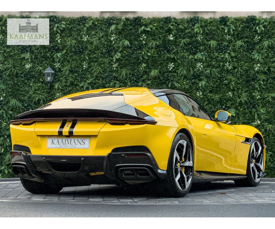 PERFORMANCE & DRIVETRAIN: 6.5L Naturally Aspirated V12 819 HP | 678 Nm Torque 0 62 mph in 2.9 Seconds | Top Speed: 211 mph+ 8-Speed Dual-Clutch F1 Transmission Rear-Wheel Drive with Rear-Wheel Steering Ferrari Side Slip Control 8.0 (SSC 8.0) Magnetic Ride Suspension with Adaptive Damping Aerodynamically Active Rear Spo...