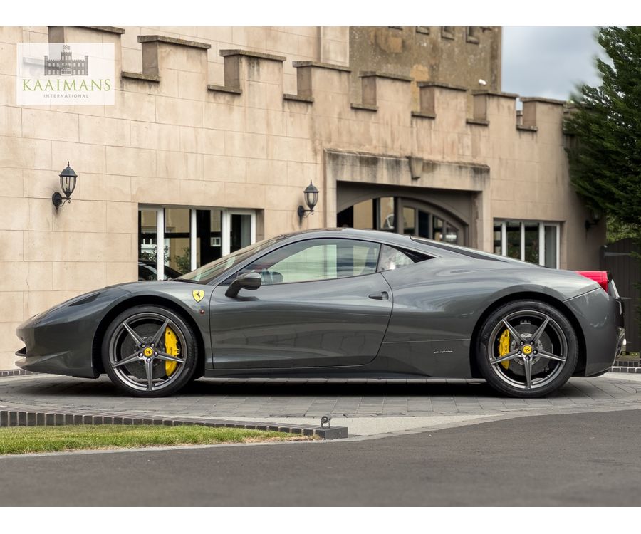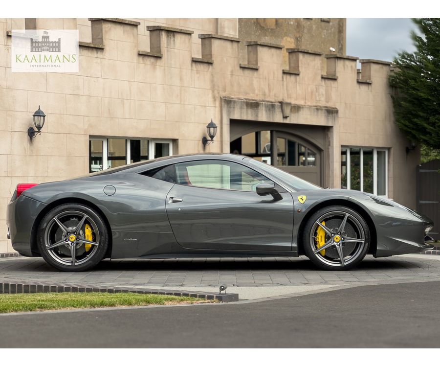 This 2012 Ferrari 458 Italia Coupe has only 8,300 miles and is finished in Grigio Silverstone. It comes with desirable options such as Carbon Fibre Racing Seats and a special leather/alcantara interior.