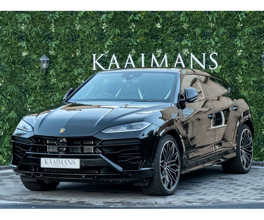 This is a 2025 Lamborghini Urus SE, a plug-in hybrid SUV with 800m miles. It features a 4.0-Litre engine, automatic transmission and is in 'As-New' condition, offered for £264,975.