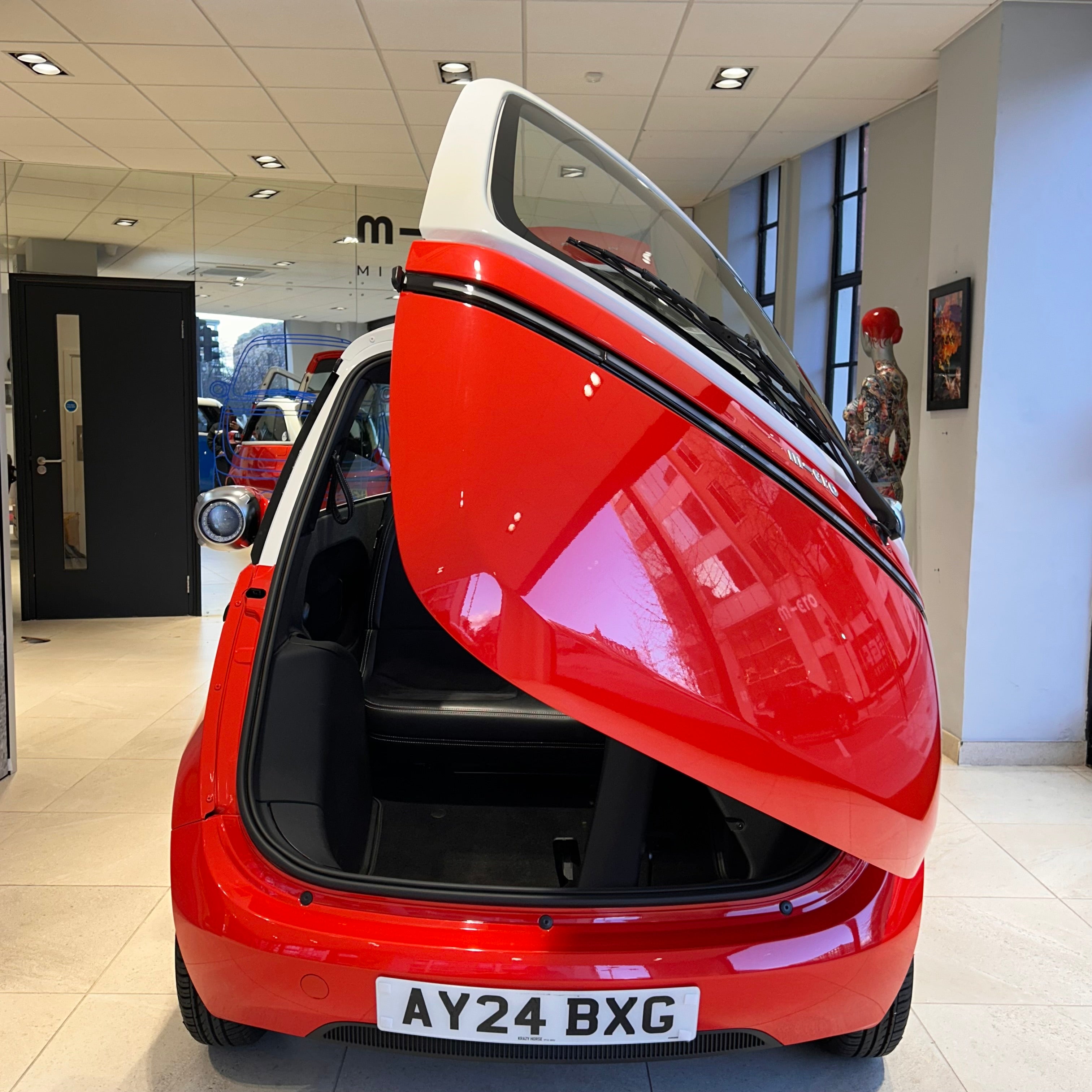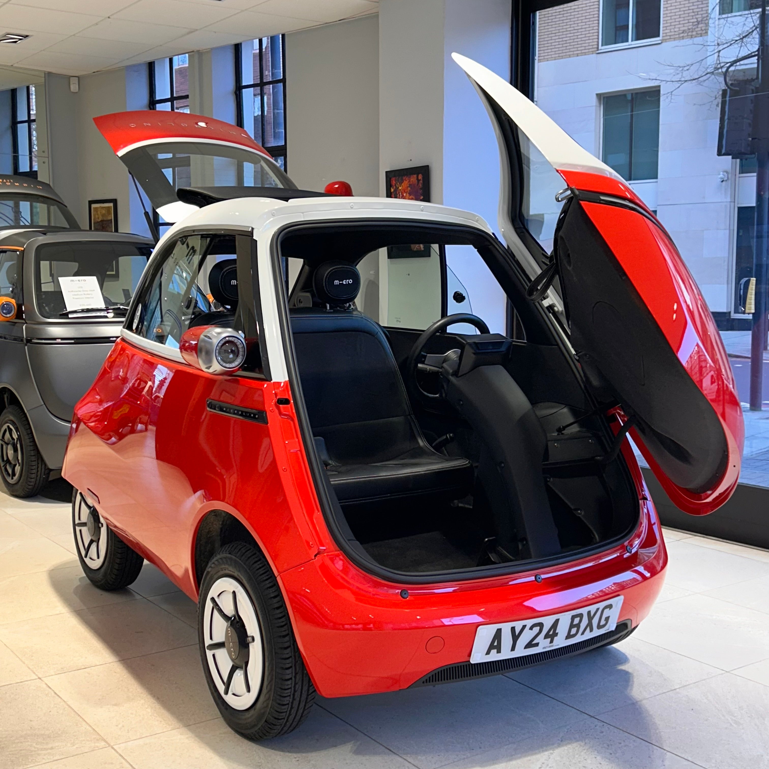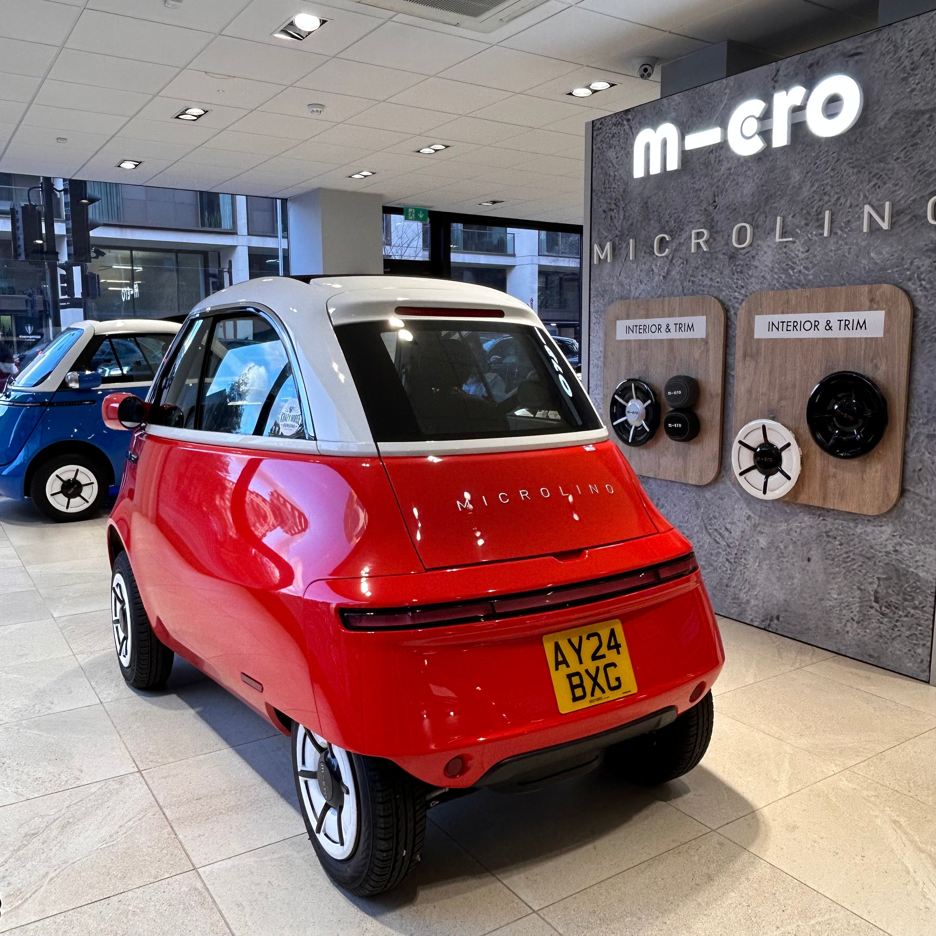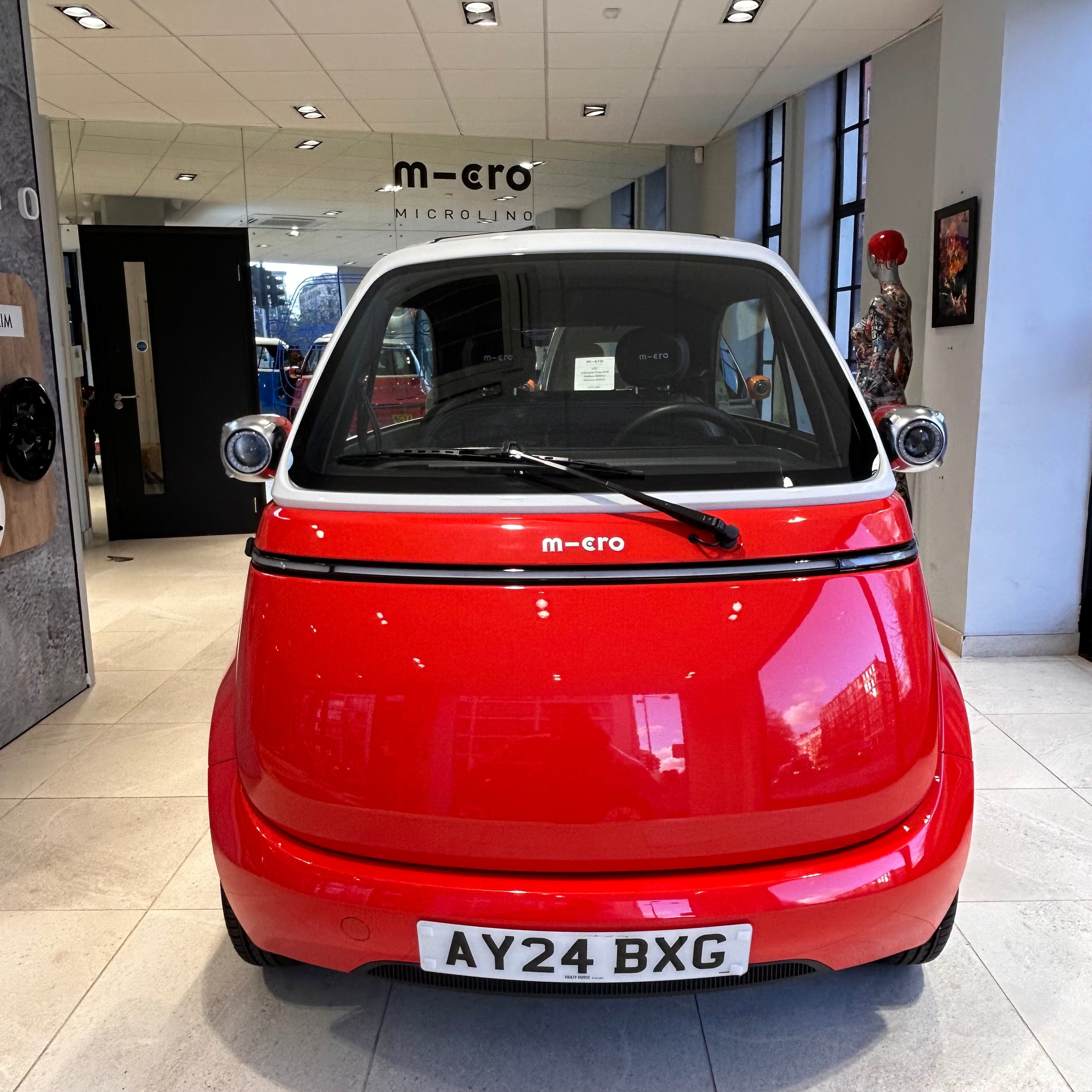 Micro: Microlino Battery: Medium 10.5kWh Colour: Milano Red and White Interior: Premium interior Mileage: 1119 miles Registration: 2024 Warranty 2 years manufacturer warranty and 6 years warranty on the battery from the date of registration.
