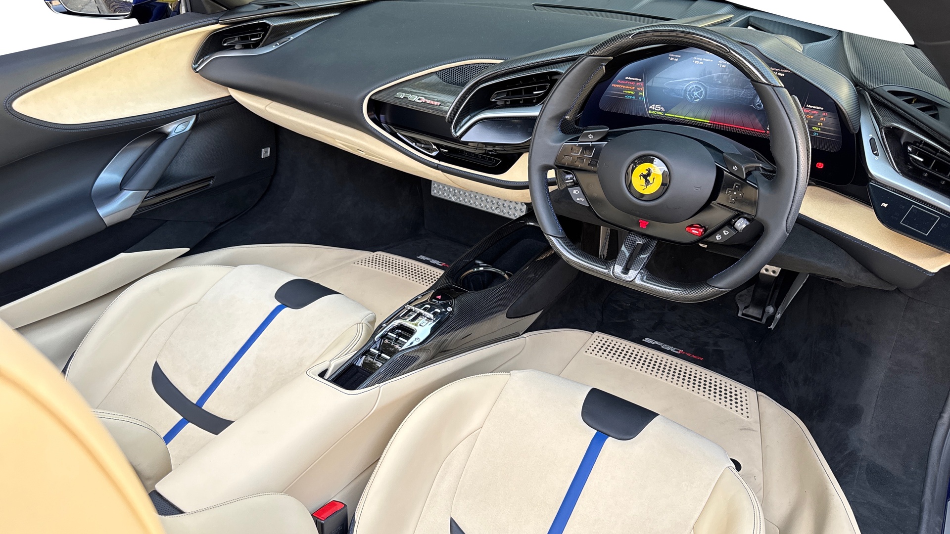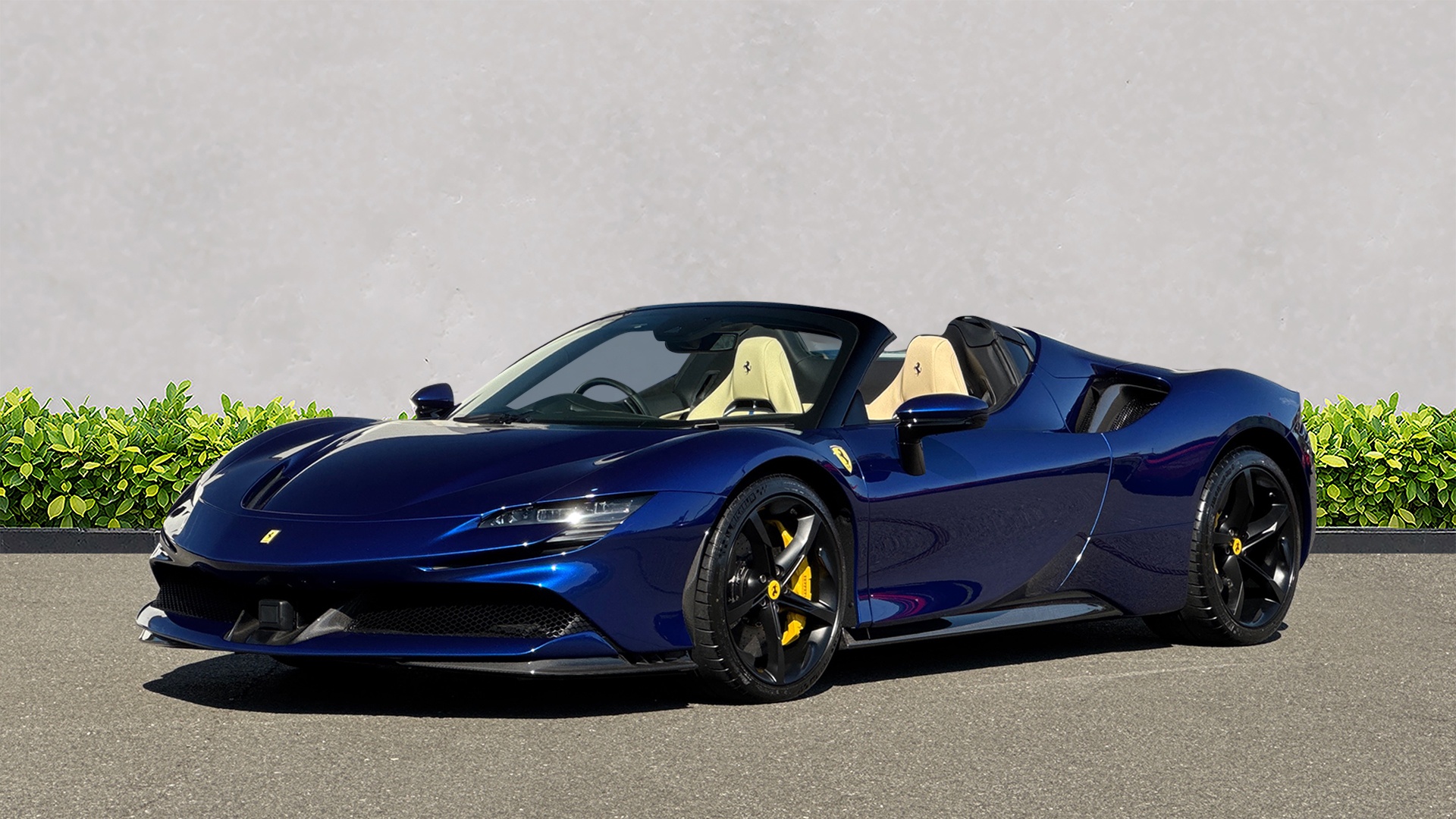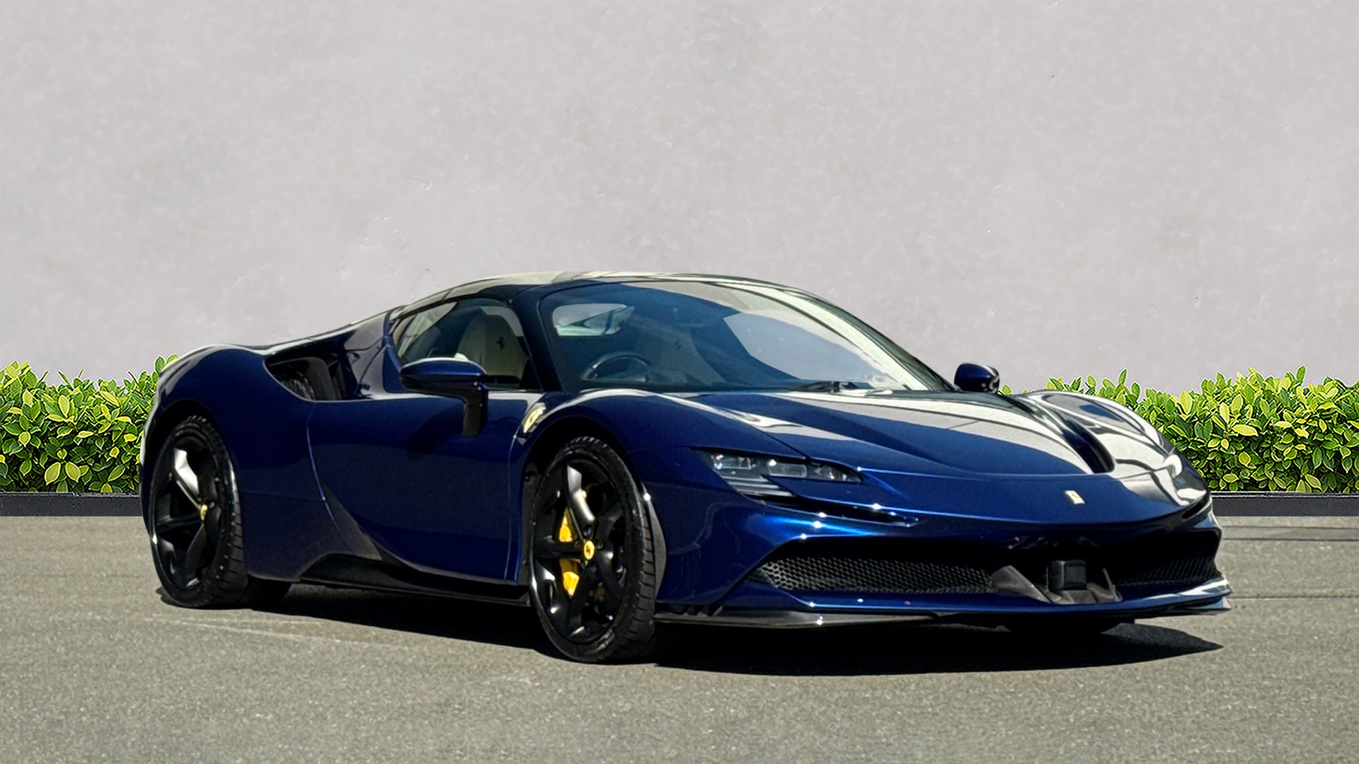 This Blu Elettrico 2020 Ferrari SF90 Spider is for sale in the Runnymede region for £409,000.