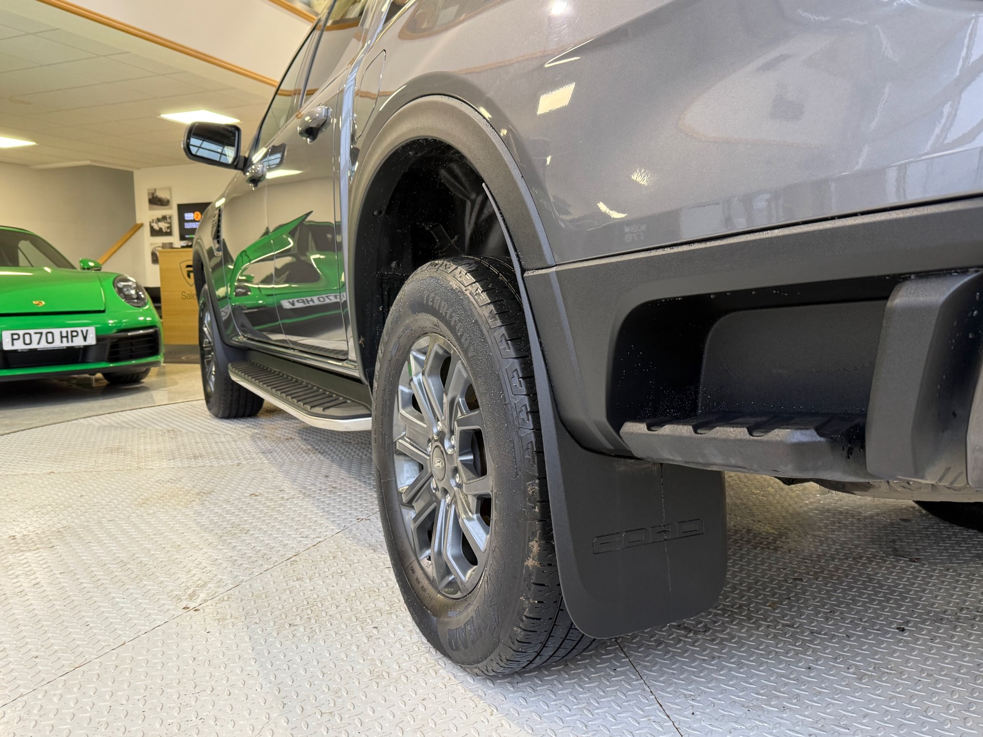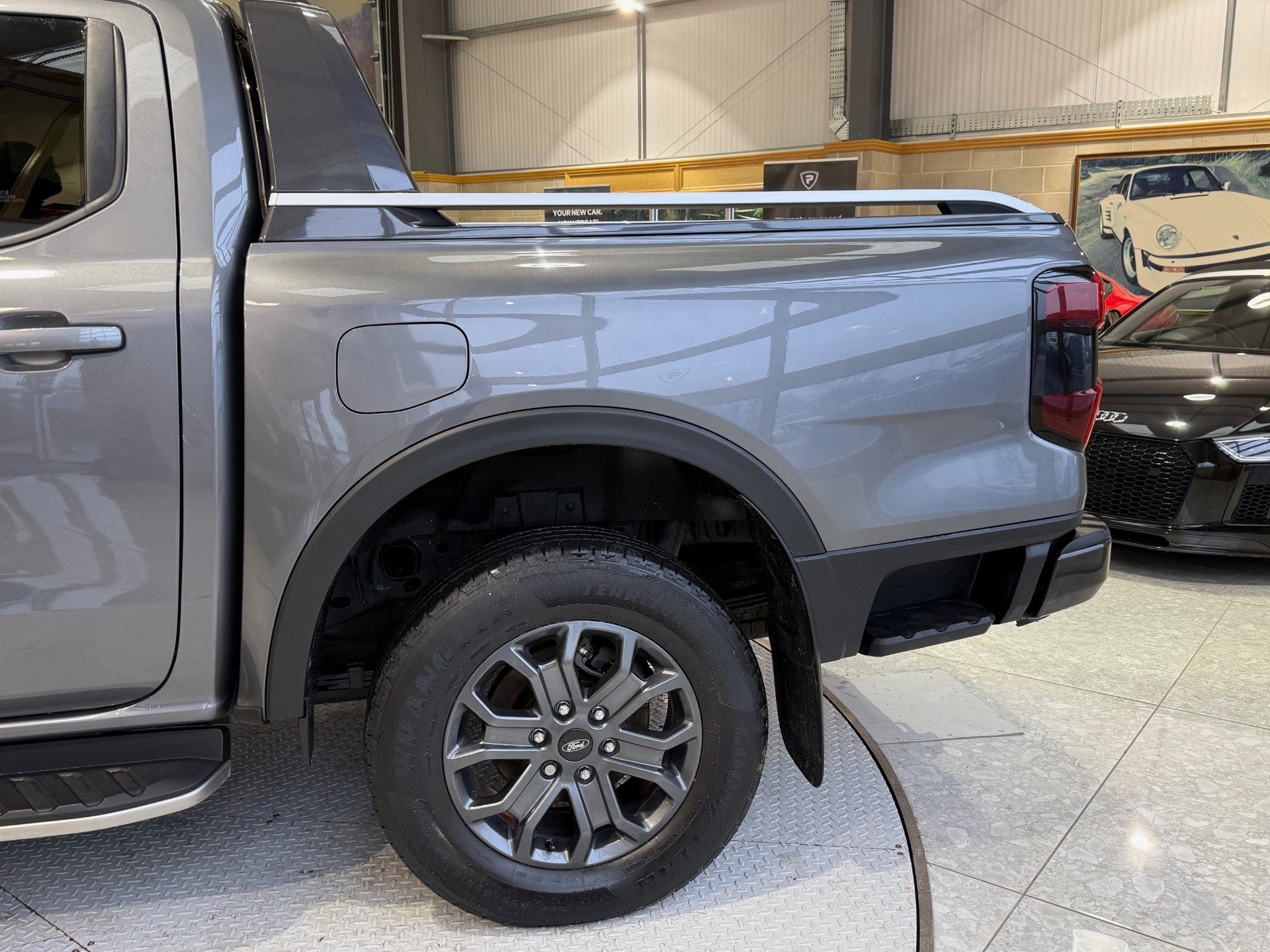 This is a grey Ford Ranger pickup registered in 2023 with 34,888 miles and one previous owner. For sale in North East Derbyshire for £26,490.