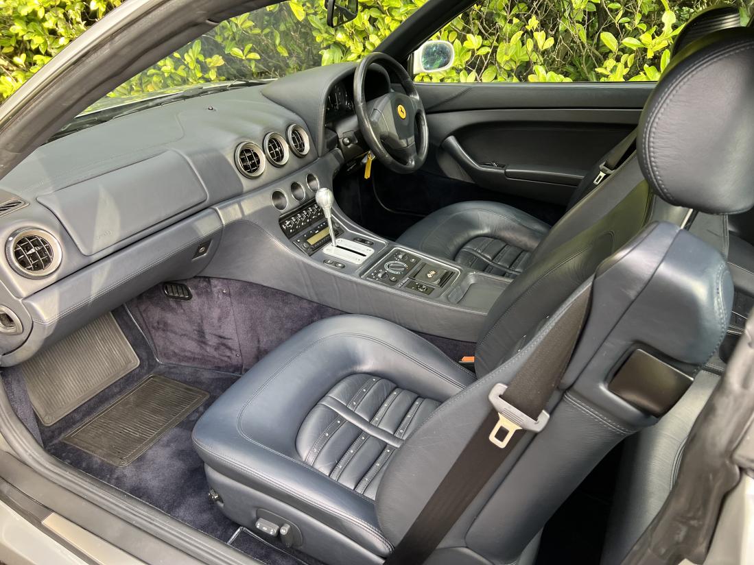 This 2000 Ferrari 456 GTA, finished in metallic silver grey with dark blue hide, was first registered in April 2001 to Mr. P.L. of Surrey. Optioned with Daytona seats, blue steering wheel and dashboard, and grey brake callipers, it was sold back to Maranello Sales within a year, having replaced an earlier 456 GTA.