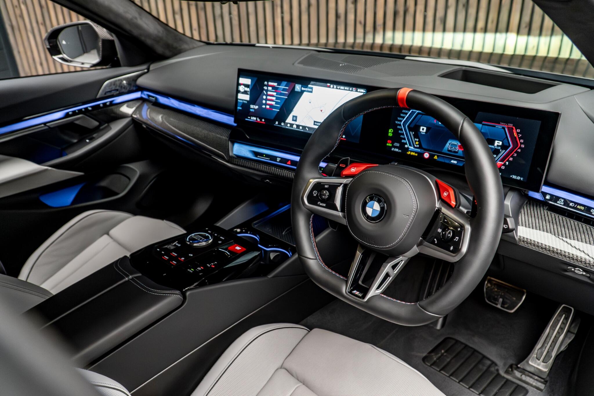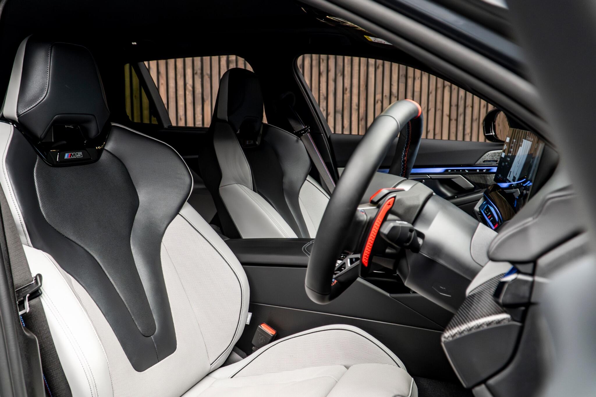 Inside, the cabin is appointed with a sophisticated trim featuring dark silver M accents combined with carbon fibre and high gloss silver threads, complemented by striking M carbon side mirror caps.