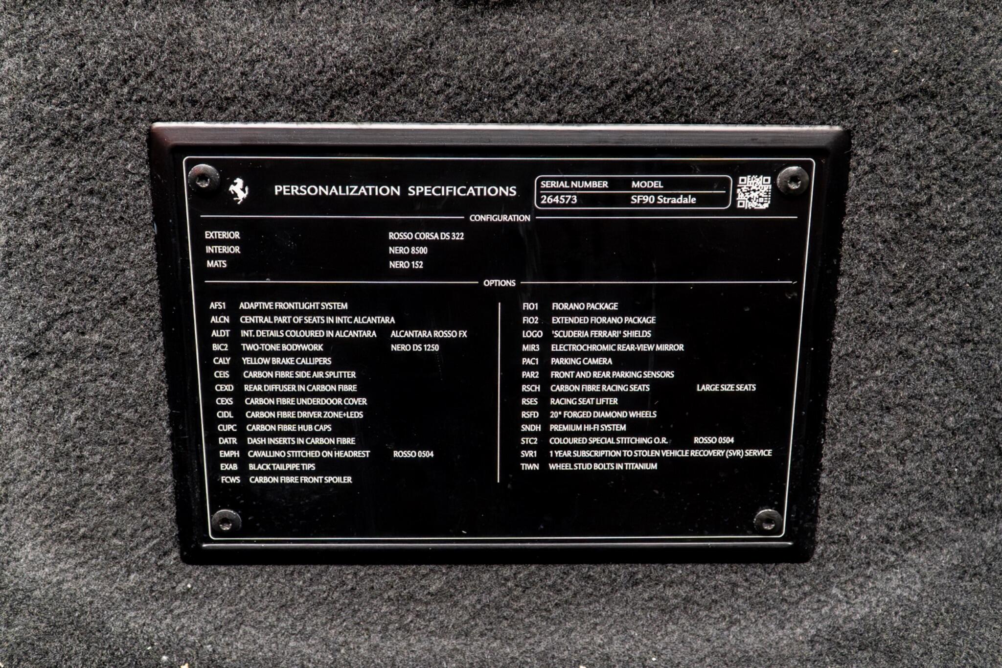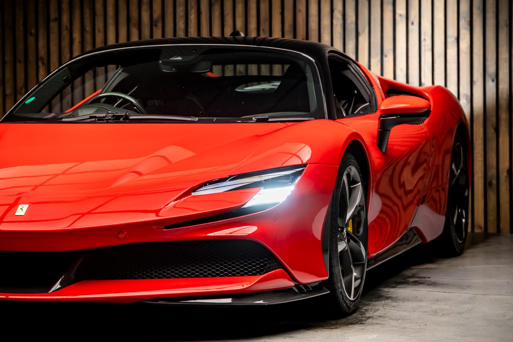 This 2021 Ferrari SF90 Stradale boasts very low mileage at 3998 miles and a powerful 4.0 litre petrol plug in hybrid engine. It features four wheel drive, full LED headlights, dual zone air conditioning, Bluetooth audio, and rear parking sensors.