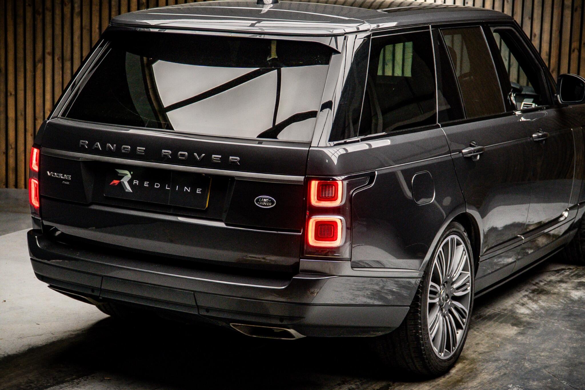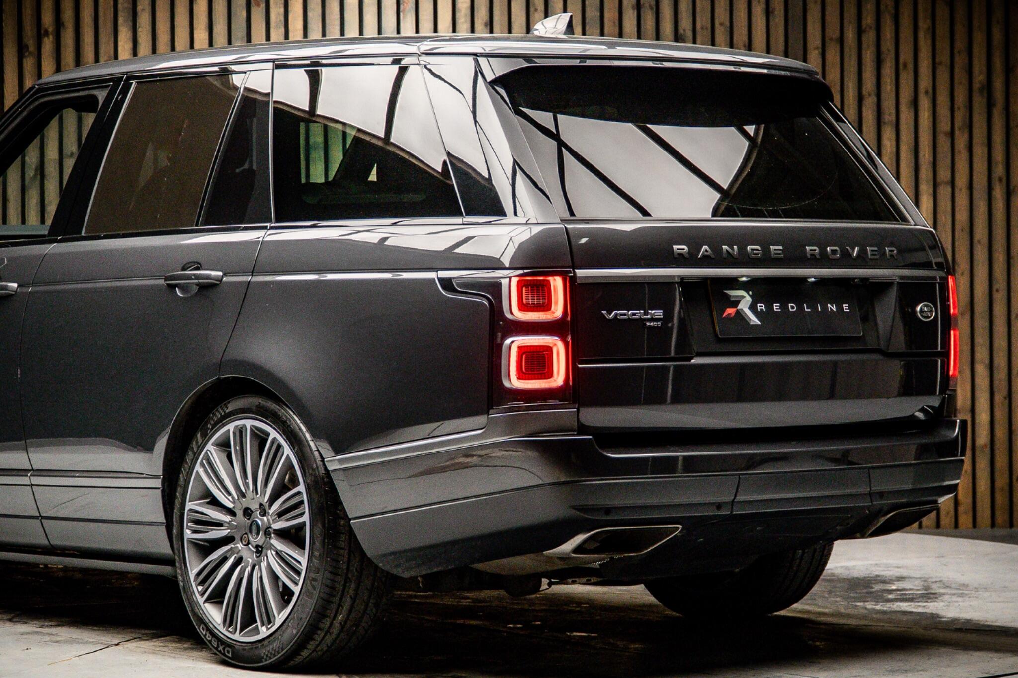 The Vogue trim level ensures a luxurious experience, complemented by notable features such as the distinctive P400 badge, grey anodised brake calipers with Land Rover script, and advanced Matrix LED headlights with signature daytime running lights.
