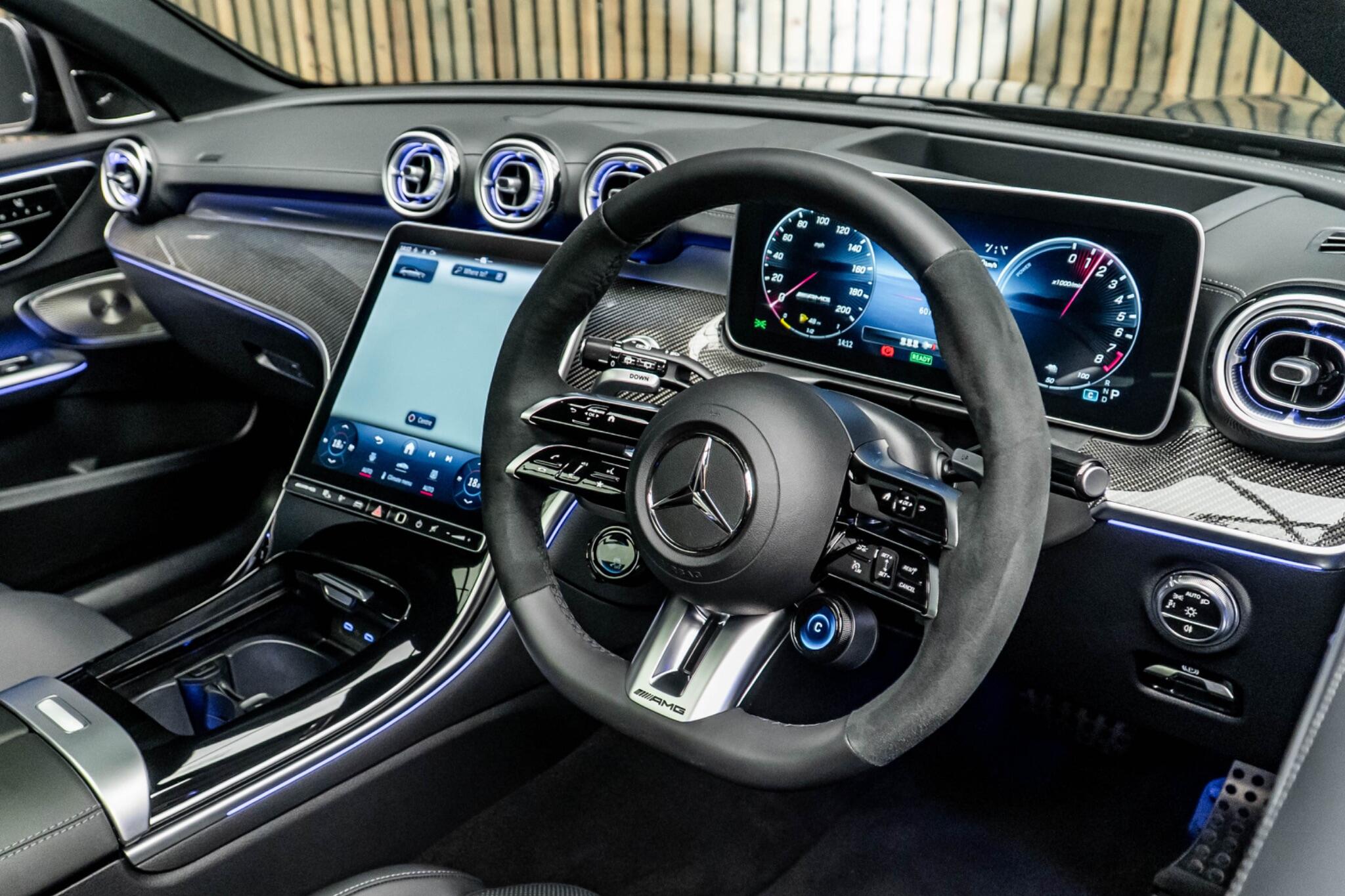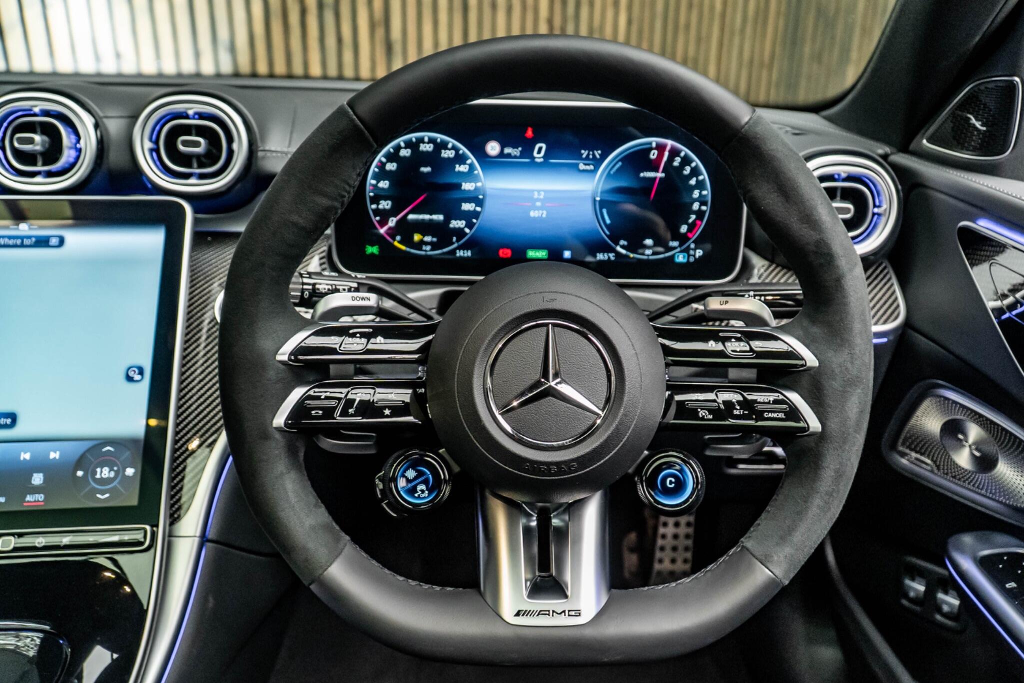 This 2023 Mercedes Benz C Class C63 AMG S E Performance Night Edition (Premium Plus) boasts exceptionally low mileage for its age, having covered just 8276 miles.