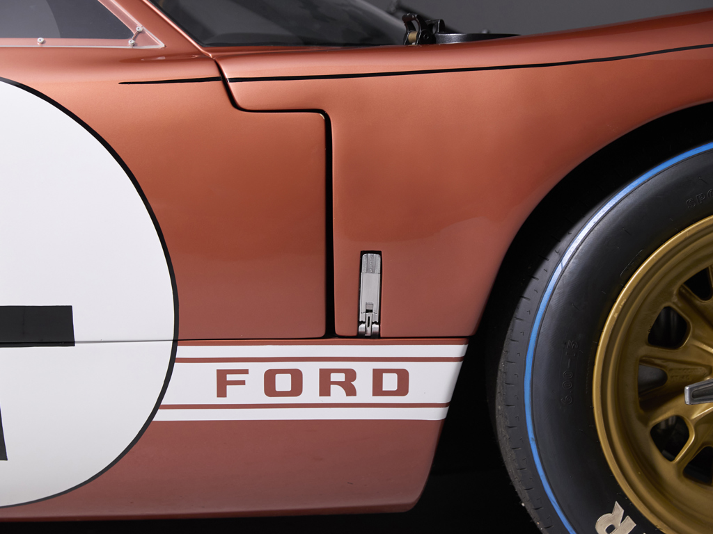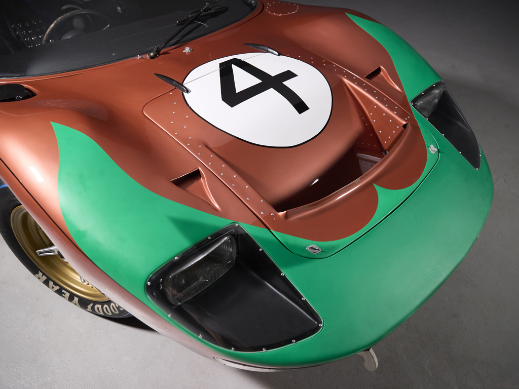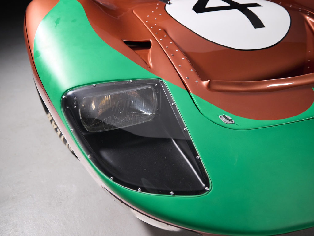 One of just eight Ford GT40 Mk IIs built; a remarkable, competition-proven Mk II with known history from new 2nd-place finish at the 1966 12 Hours of Sebring as the #3 Holman-Moody entry driven by Walt Hansgen and Mark Donohue Subsequently used as a test car at Ford’s Kingman test track alongside J-1 and later at Riverside Raceway in preparation for Le Mans One of three Holman-Moody GT40 Mk IIs entered at the 1966 24 Hours of Le Mans; this was the #4 car driven by Mark Donohue and Paul Hawkins Following Le Mans, P/1032 was displayed at European motor shows in 1966 and 1967 Donated to the Indianapolis Motor Speedway Museum in March of 1968 Restoration completed in 2011 to its #4 Holman-Moody 1966 24 Hours of Le Mans configuration; last shown outside of the IMS Museum at the 2011 Concours d'Elegance of America