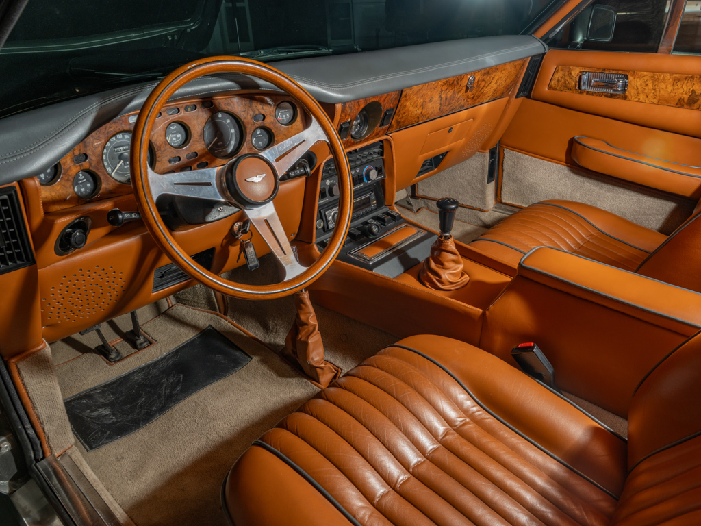 Desirable Vantage-specification model with five-speed manual gearbox Delivered new to Kuwait in December 1984 Retains its matching-numbers 5.3-litre V-8 engine Accompanied by a copy of its factory build sheet Ambito modello con specifica Vantage e cambio manuale a cinque rapporti Consegnata nuova in Kuwait nel dicembre 1984 Motore V-8 originale da 5,3 litri Completa di una copia della scheda di produzione rilasciata dalla fabbrica