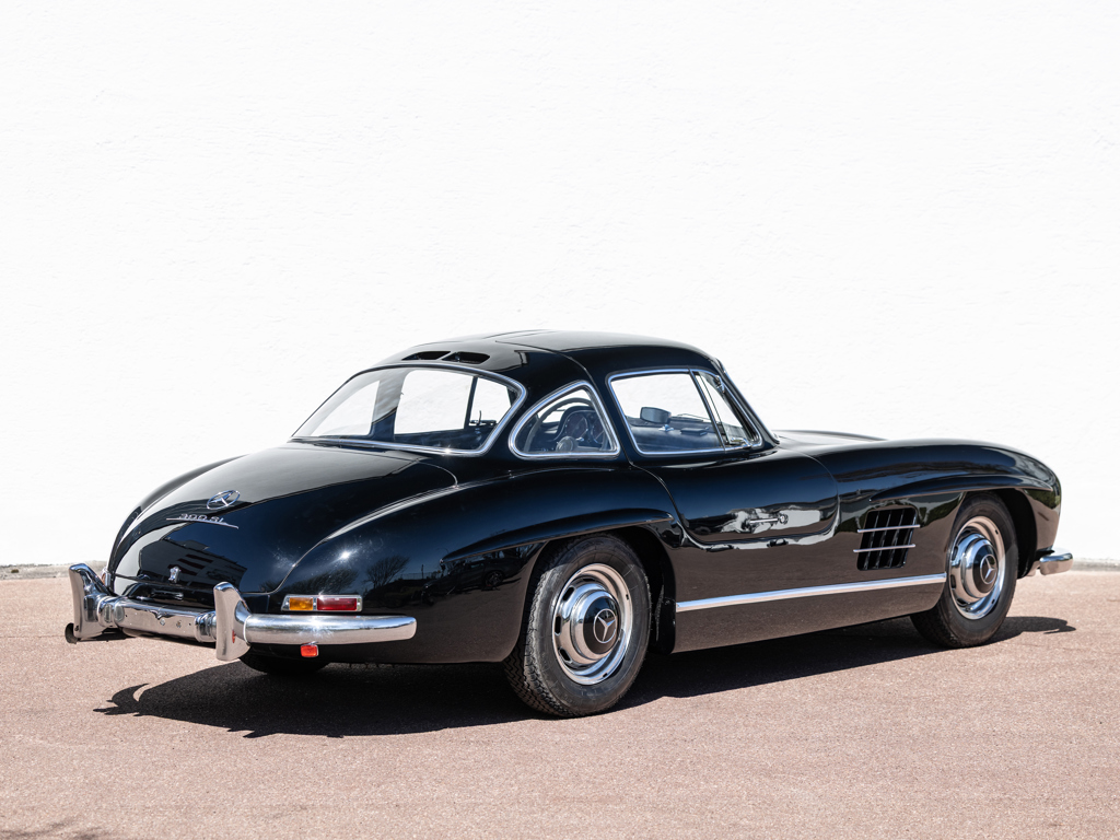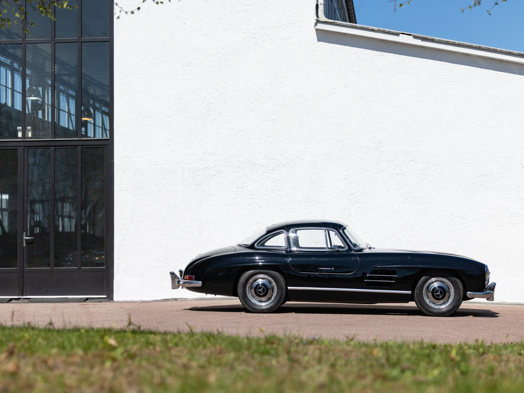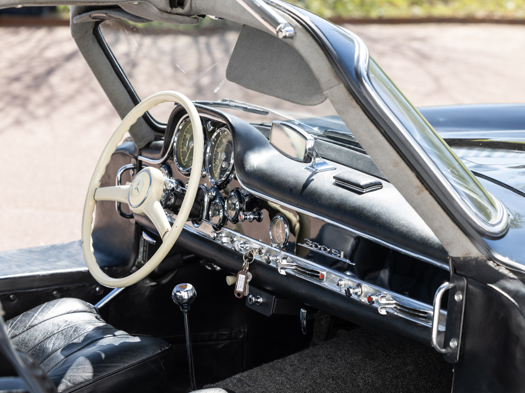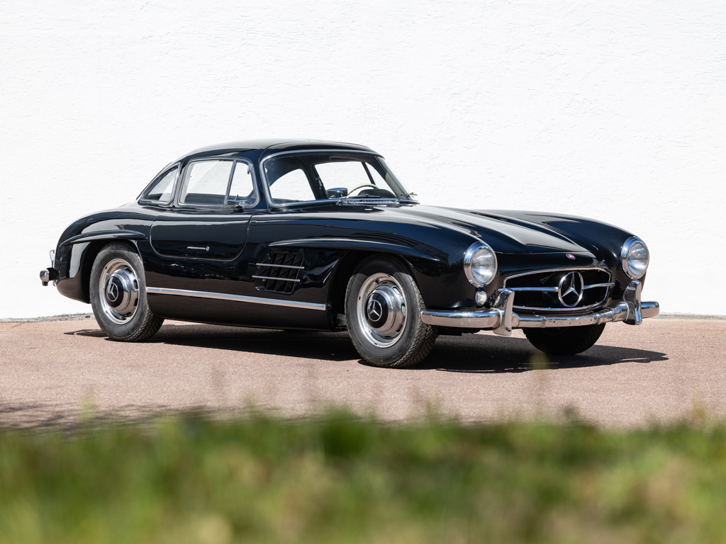 An early 300 SL Gullwing that left the Untertürkheim factory in December 1954; one of only 166 made in the first year of Gullwing production Finished by the factory in the rare and desirable shade of Light Blue Metallic over a Light Grey interior; now finished in black over a black leather interior Retains its matching-numbers body, chassis, and engine Delivered new to its first owner in Buffalo, New York with continued ownership in the United States until the Gullwing was brought to its native Germany by the consigning owner A stand-out component of The Stuttgart Legends Collection since 2010 and formerly part of The Blackhawk Collection based in Danville, California Recipient of more than €140,000-worth of workshop recommissioning by Mercedes-Benz specialist Mechatronik of Pleidelsheim over 2010 and 2011 Accompanied by a 2025 inspection report by Mercedes-Benz Heritage Uno dei primi esemplari di 300 SL Gullwing, lasciò lo stabilimento di Untertürkheim nel dicembre 1954; uno dei soli ...