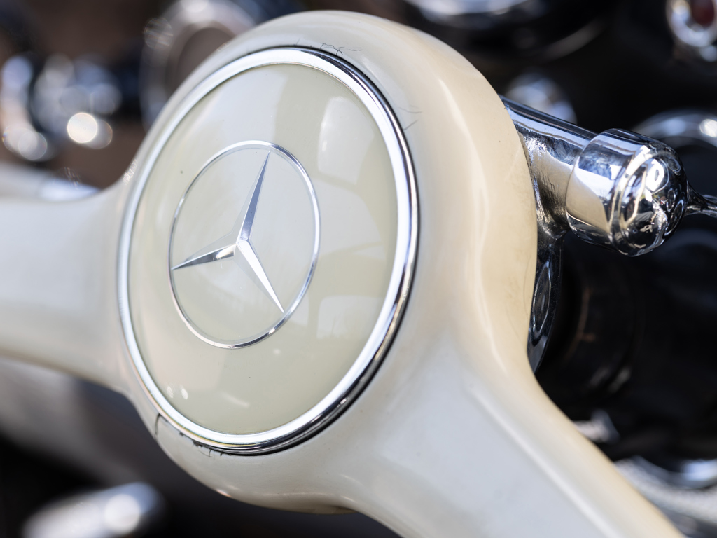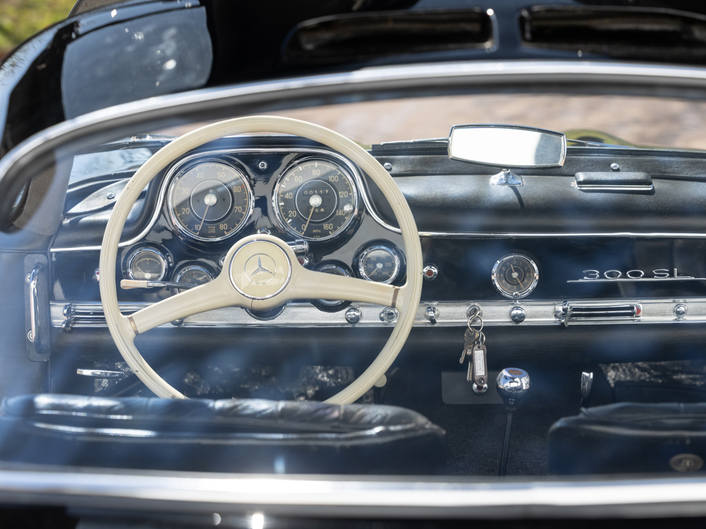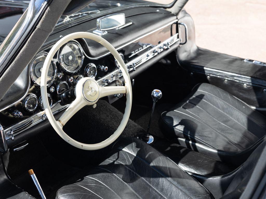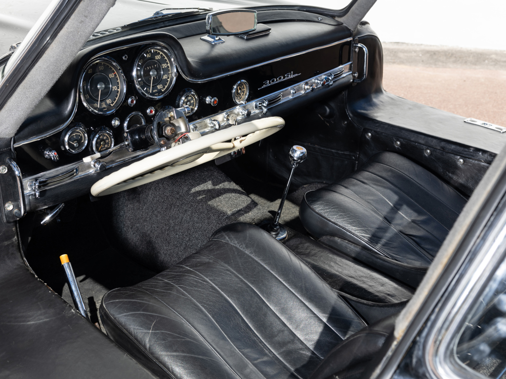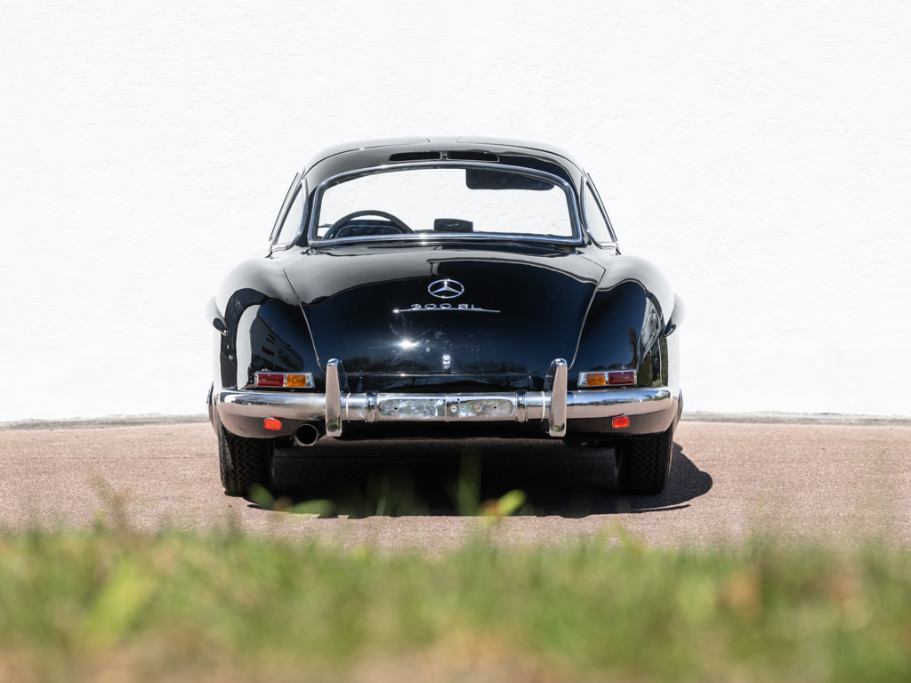 An early 300 SL Gullwing that left the Untertürkheim factory in December 1954; one of only 166 made in the first year of Gullwing production Finished by the factory in the rare and desirable shade of Light Blue Metallic over a Light Grey interior; now finished in black over a black leather interior Retains its matching-numbers body, chassis, and engine Delivered new to its first owner in Buffalo, New York with continued ownership in the United States until the Gullwing was brought to its native Germany by the consigning owner A stand-out component of The Stuttgart Legends Collection since 2010 and formerly part of The Blackhawk Collection based in Danville, California Recipient of more than €140,000-worth of workshop recommissioning by Mercedes-Benz specialist Mechatronik of Pleidelsheim over 2010 and 2011 Accompanied by a 2025 inspection report by Mercedes-Benz Heritage Uno dei primi esemplari di 300 SL Gullwing, lasciò lo stabilimento di Untertürkheim nel dicembre 1954; uno dei soli ...