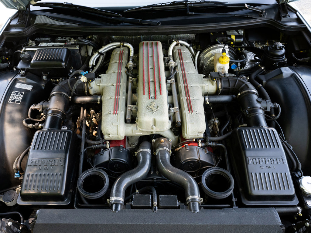 Attractive, low-mileage example of Ferrari’s return to front-engine V-12 grand tourers Equipped with Daytona-style seats, dark blue upper dashboard and roof, modular wheels, upholstered rear leather shelf, and a colored steering wheel Displayed 5,732 mi.