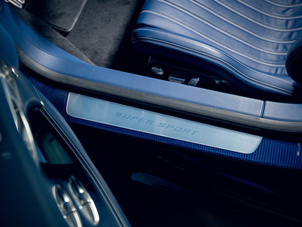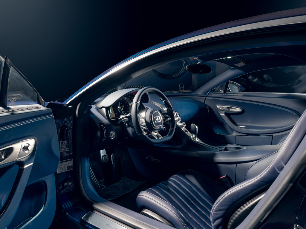 Aerodynamically optimised version of the Chiron, Bugatti’s seminal W16-powered hypercar One of a stated 80 examples made towards the end of the Chiron’s celebrated production run Powered by Bugatti’s iconic 8.0-litre quad-turbocharged W16 engine, factory rated at 1,578 horsepower to achieve a staggering top speed of 440 km/h Presents in Blue Carbon and Grey Carbon over a cabin trimmed in Deep Blue leather with contrasting Gris Rafale stitching and embroidery Delivered new to Switzerland and retained by The Tailored For Speed Collection as a single-owner example Last serviced by a Bugatti-authorised dealer in Zurich in March 2025 Displays just 516 kilometres at the time of cataloguing