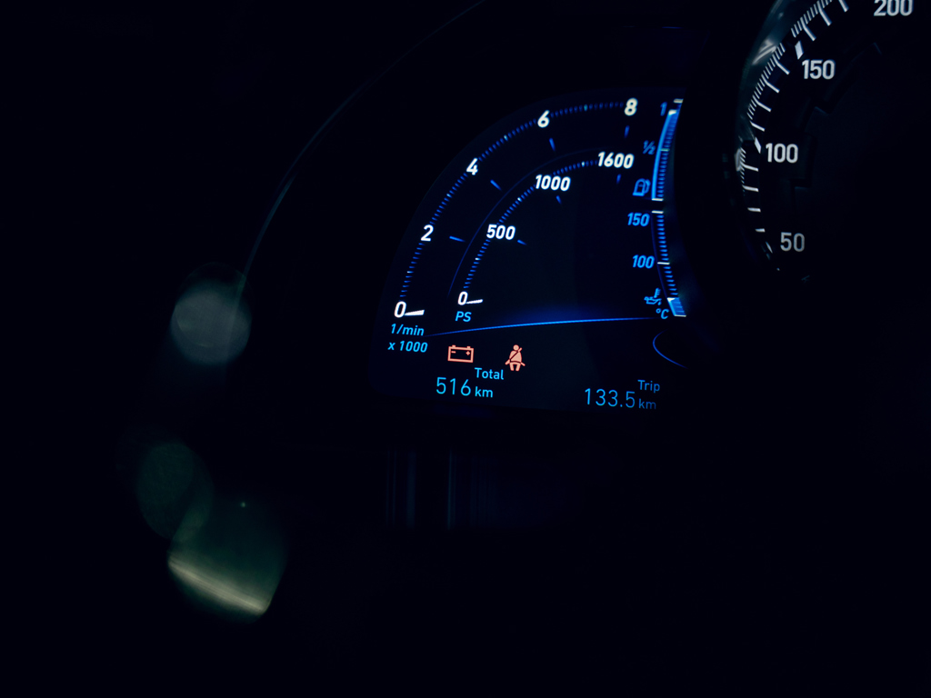 The car displays only 516 kilometers and was recently serviced by an authorized dealer, suggesting it's in near-perfect condition with only minor signs of use.