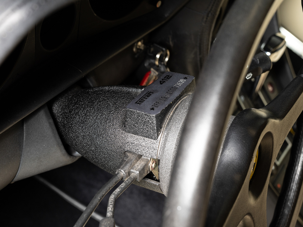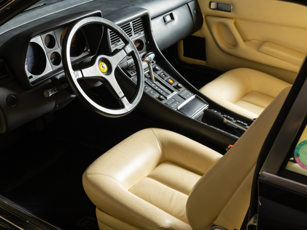 One of 576 examples produced of the ever-stylish 412 Retains its matching-numbers 4.9-litre V-12 engine, gearbox, and differential Delivered new via Sportgarage Bruno Wyss of Zofingen, Switzerland Finished in its factory-correct Nero over a Crema Autolux leather interior Certified by Ferrari Classiche in December 2010 Accompanied by its Ferrari owner’s manual, warranty book, spare wheel, and jack
