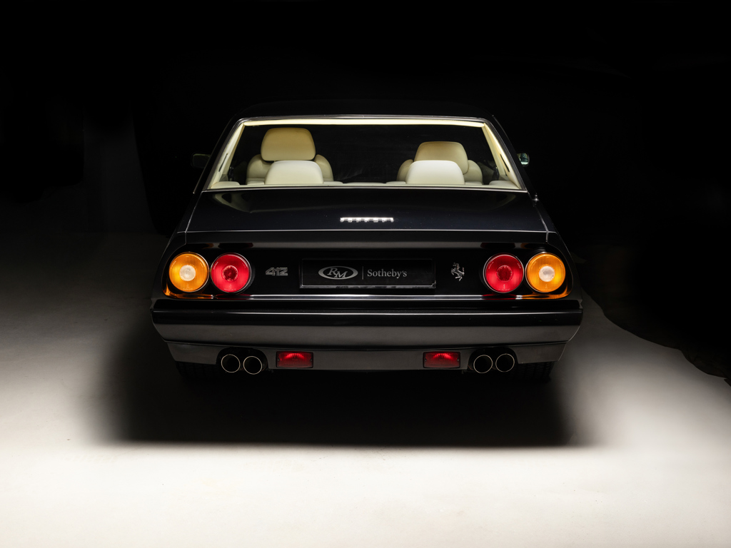 This 1987 Ferrari 412, one of only 576 produced, retains its original components and factory-correct Nero over Crema color scheme. It also comes with documentation and accessories, adding to its collectibility.